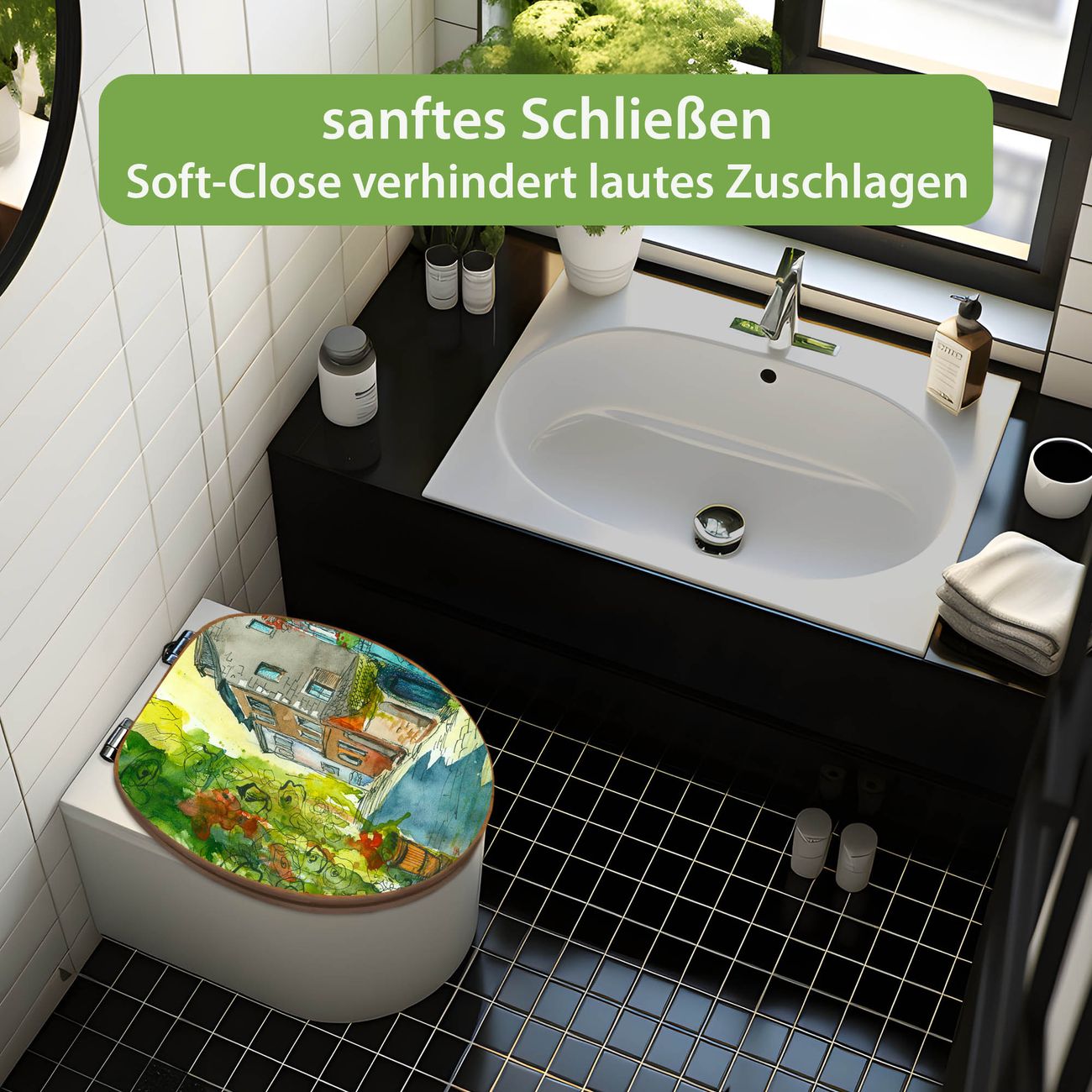 Design WC-Sitz Bambus Absenkautomatik Motiv Historischer Stadtkern