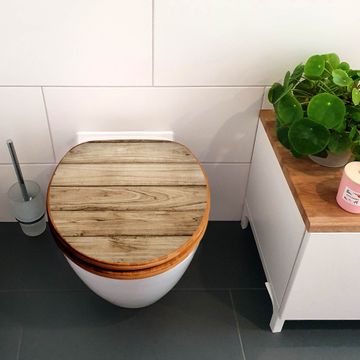 Mit dem banjado Toilettensitz in Bambus verbinden Sie Design und Funktionalität. Sie erhalten den WC-Sitz mit bewährter Holz Qualität und Universal Scharnieren. Das Motiv Motiv Holzplanken besteht aus einer schutzlaminierten Motivfolie, die durch das Schutzlaminat zusätzlich vor Kratzern schützt. Durch diesen Motivdruck wird der WC-Sitz zu einem Blickfang in Ihrem Bad.