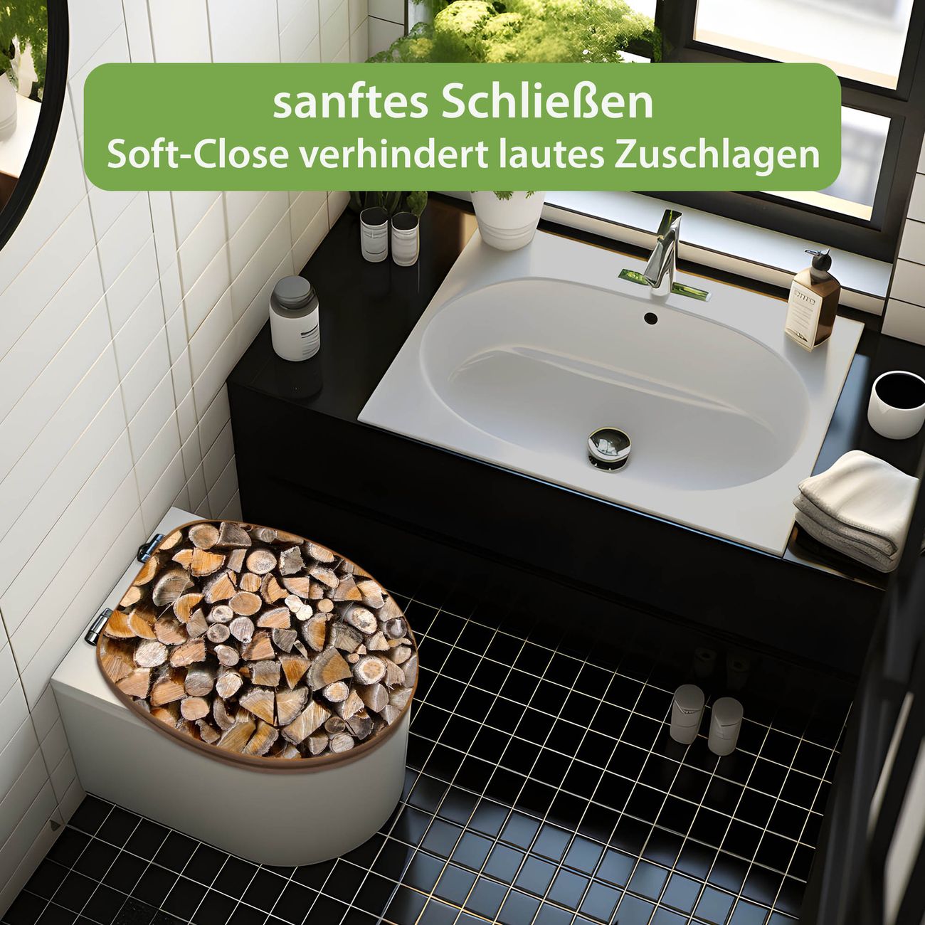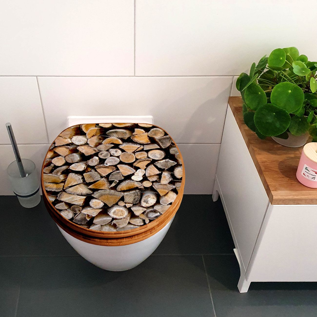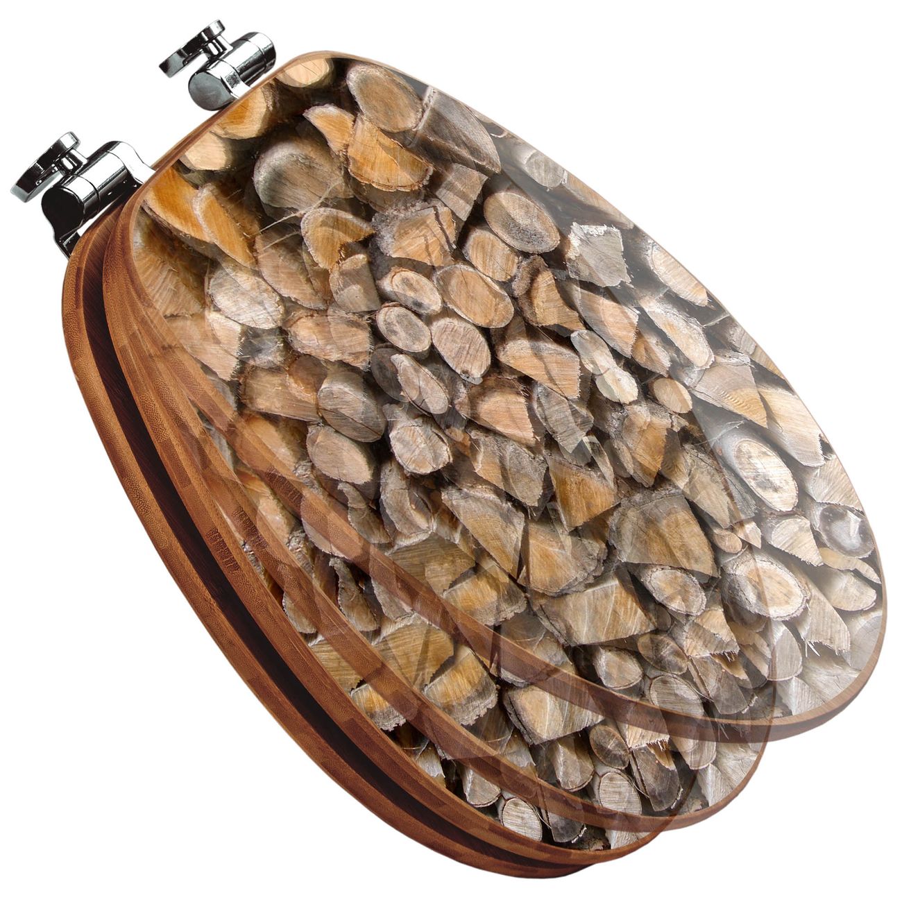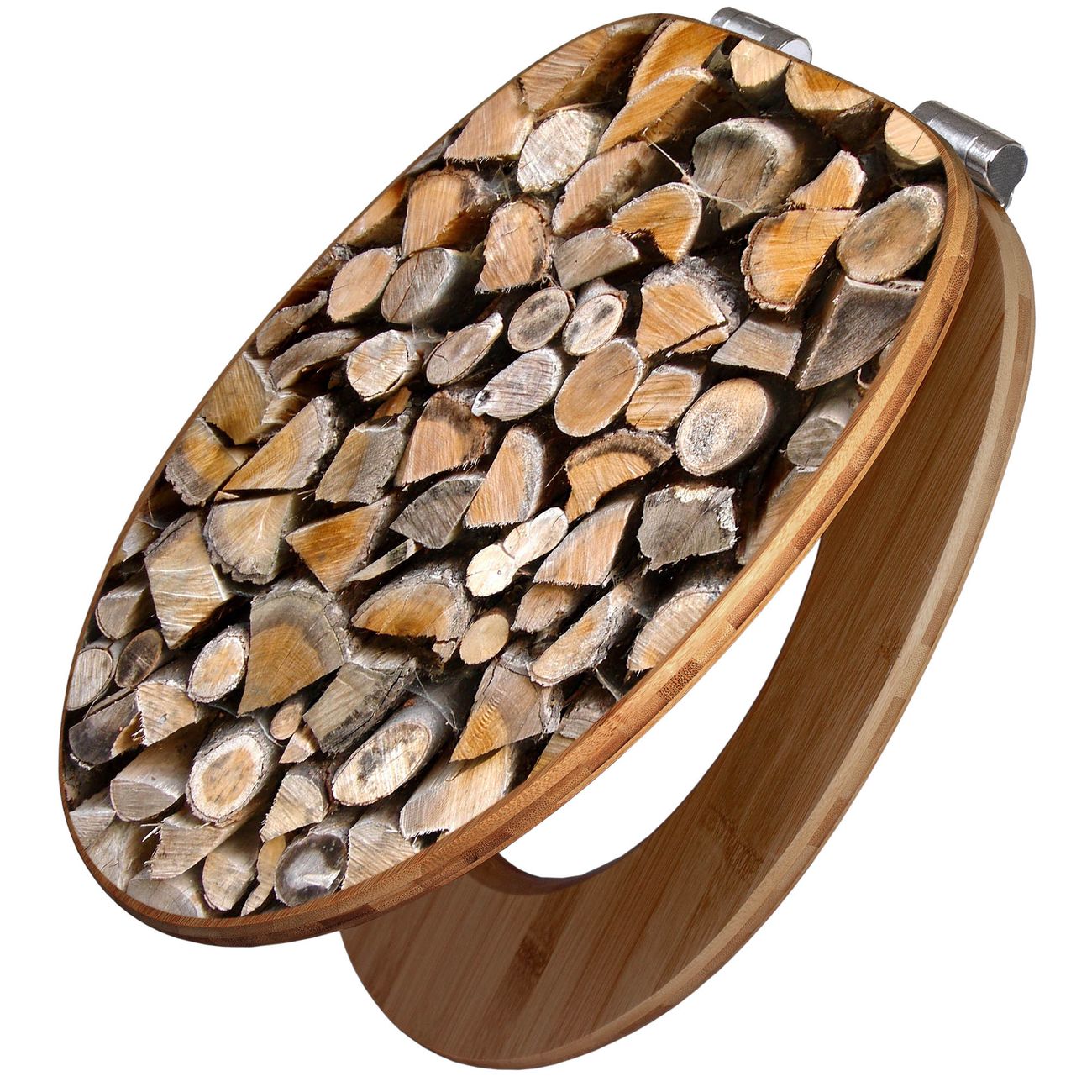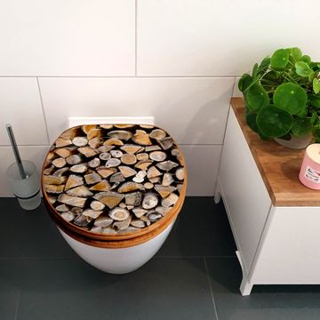 Design WC-Sitz Bambus Absenkautomatik Motiv Holzstapel
