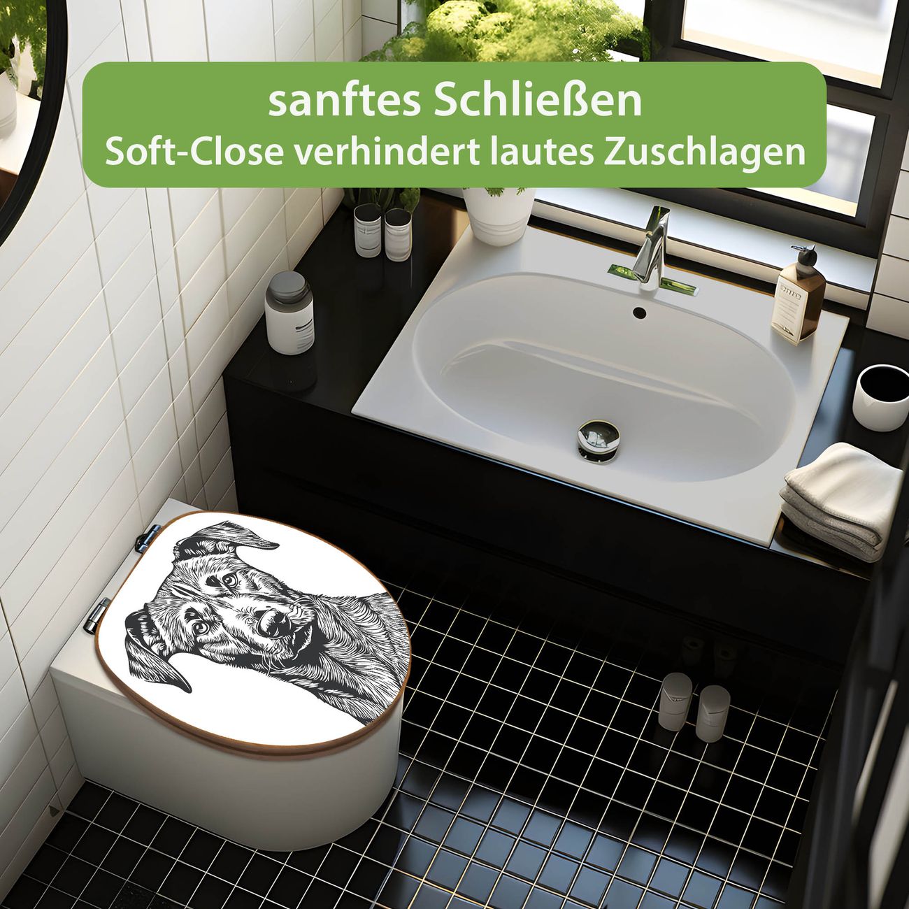 Design WC-Sitz Bambus Absenkautomatik Motiv Hundeskizze 1