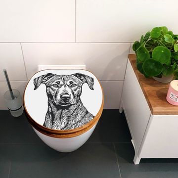 Mit dem banjado Toilettensitz in Bambus verbinden Sie Design und Funktionalität. Sie erhalten den WC-Sitz mit bewährter Holz Qualität und Universal Scharnieren. Das Motiv Motiv Hundeskizze 1 besteht aus einer schutzlaminierten Motivfolie, die durch das Schutzlaminat zusätzlich vor Kratzern schützt. Durch diesen Motivdruck wird der WC-Sitz zu einem Blickfang in Ihrem Bad.