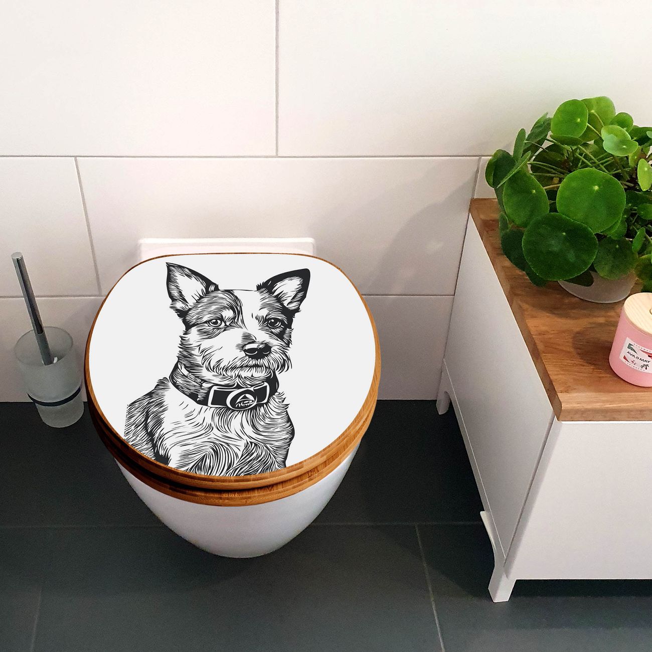 Design WC-Sitz Bambus Absenkautomatik Motiv Hundeskizze 2