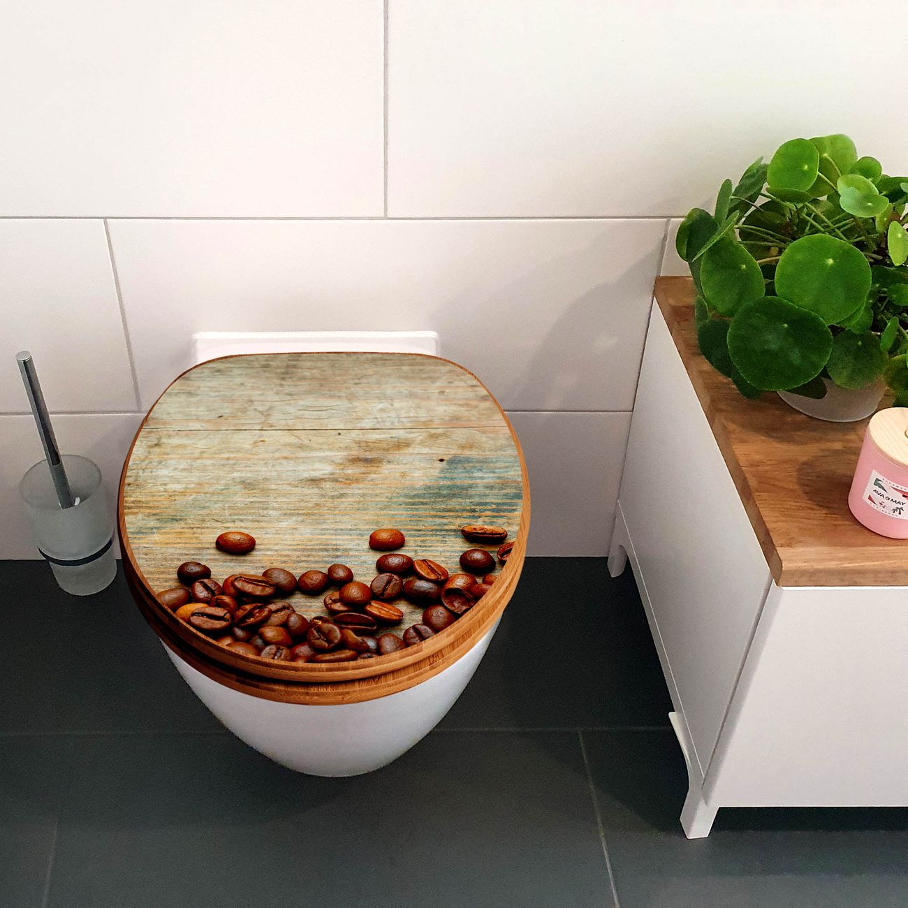 Design WC-Sitz Bambus Absenkautomatik Motiv Kaffeebohnen