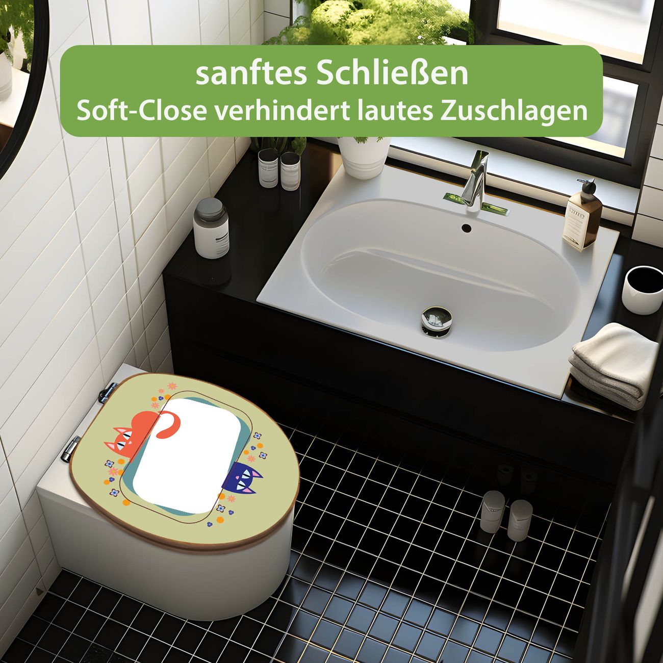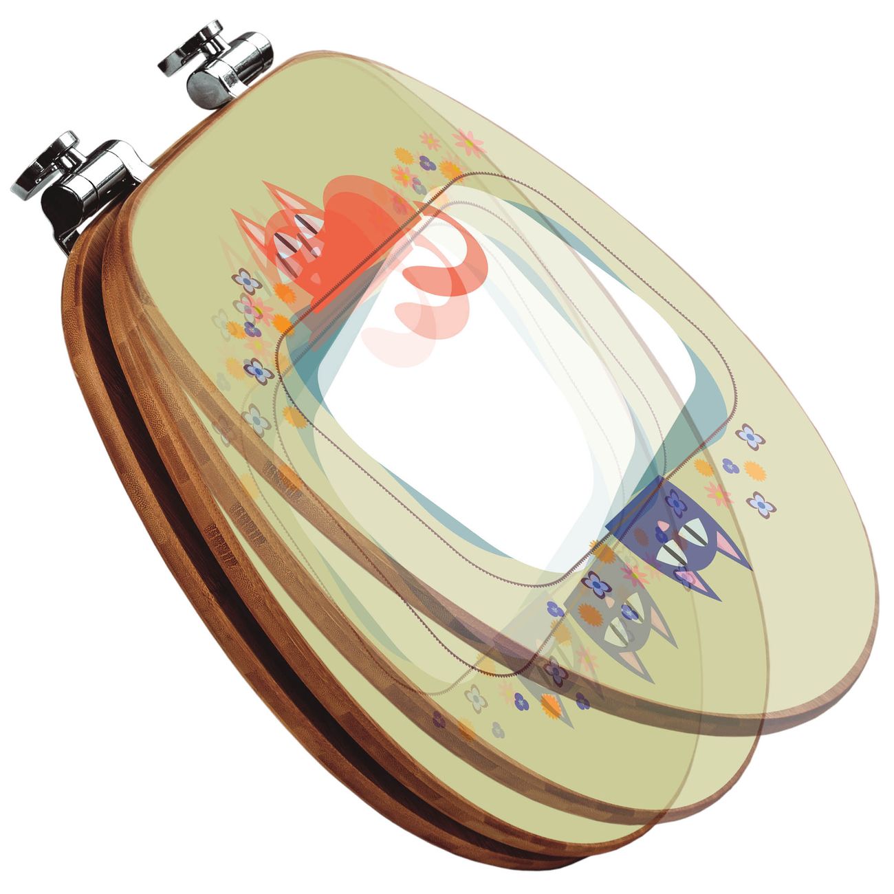 Design WC-Sitz Bambus Absenkautomatik Motiv Karikatur Katzen