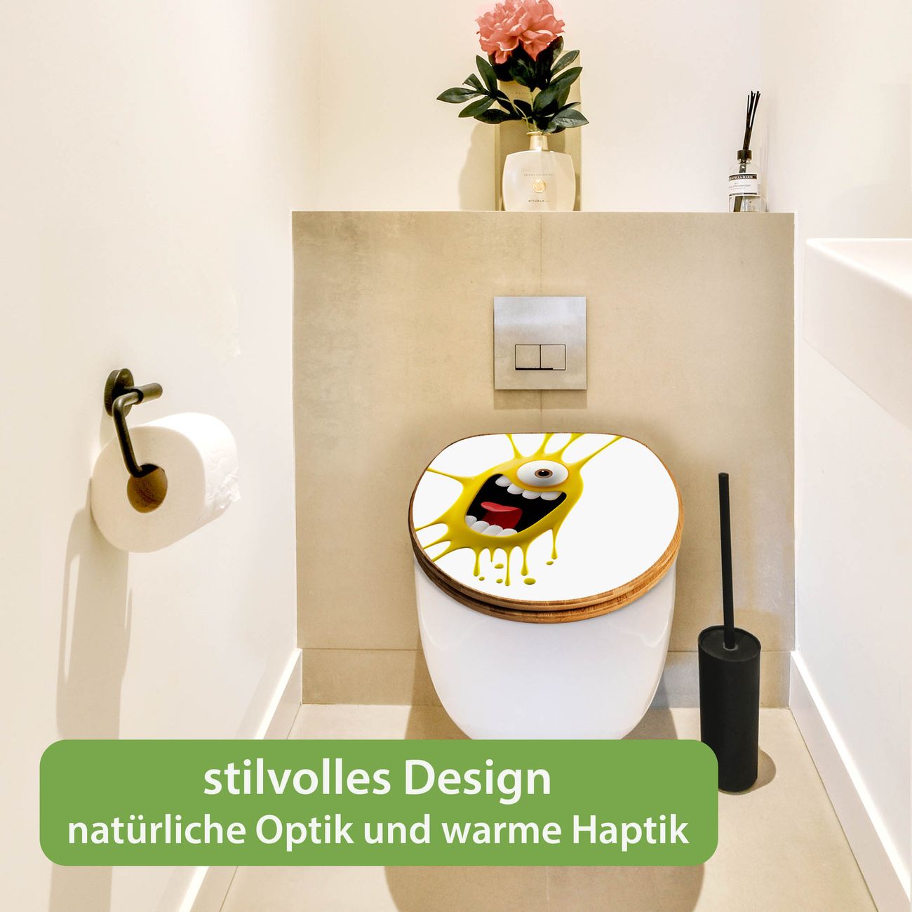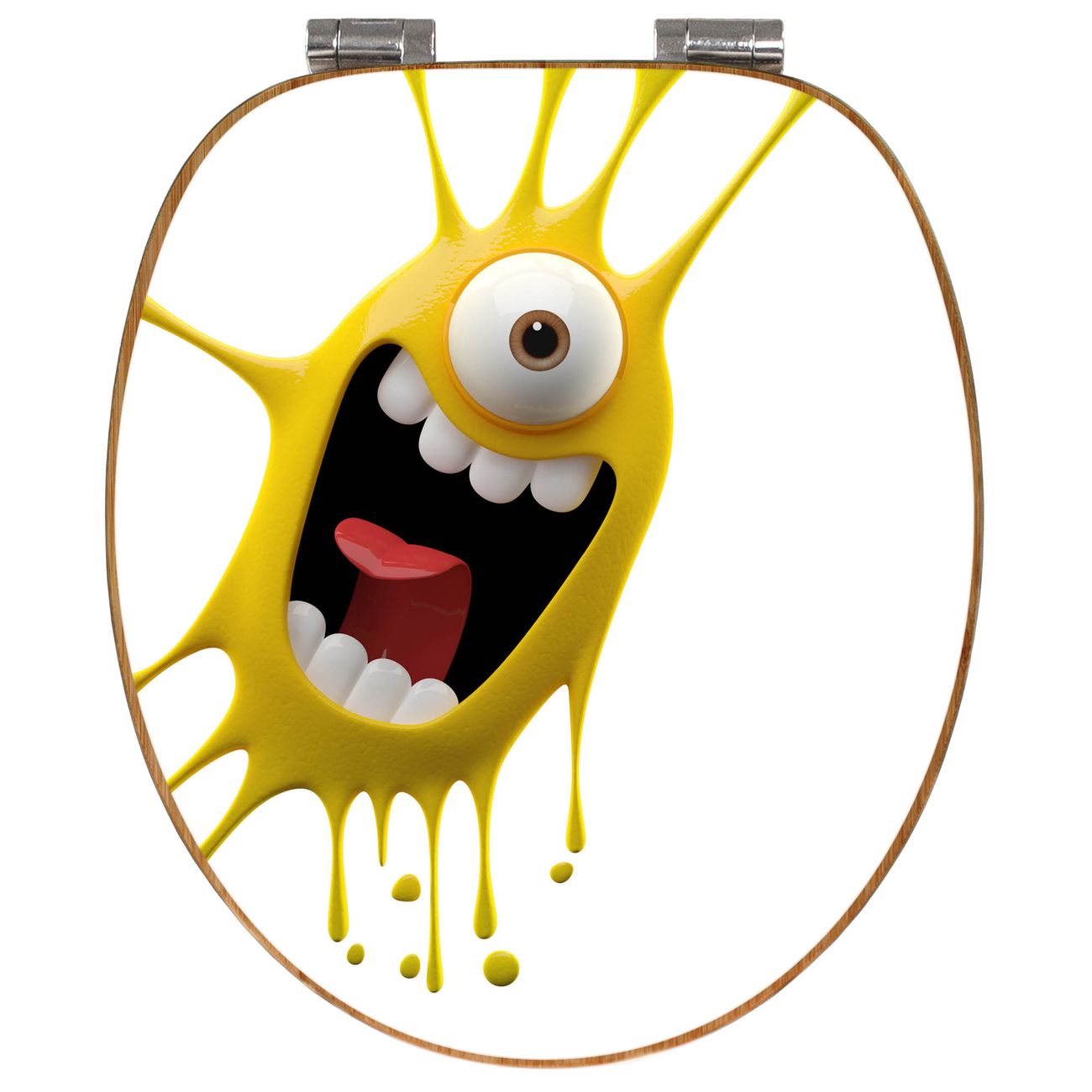 Mit dem banjado Toilettensitz in Bambus verbinden Sie Design und Funktionalität. Sie erhalten den WC-Sitz mit bewährter Holz Qualität und Universal Scharnieren. Das Motiv Motiv Karl Splash besteht aus einer schutzlaminierten Motivfolie, die durch das Schutzlaminat zusätzlich vor Kratzern schützt. Durch diesen Motivdruck wird der WC-Sitz zu einem Blickfang in Ihrem Bad.