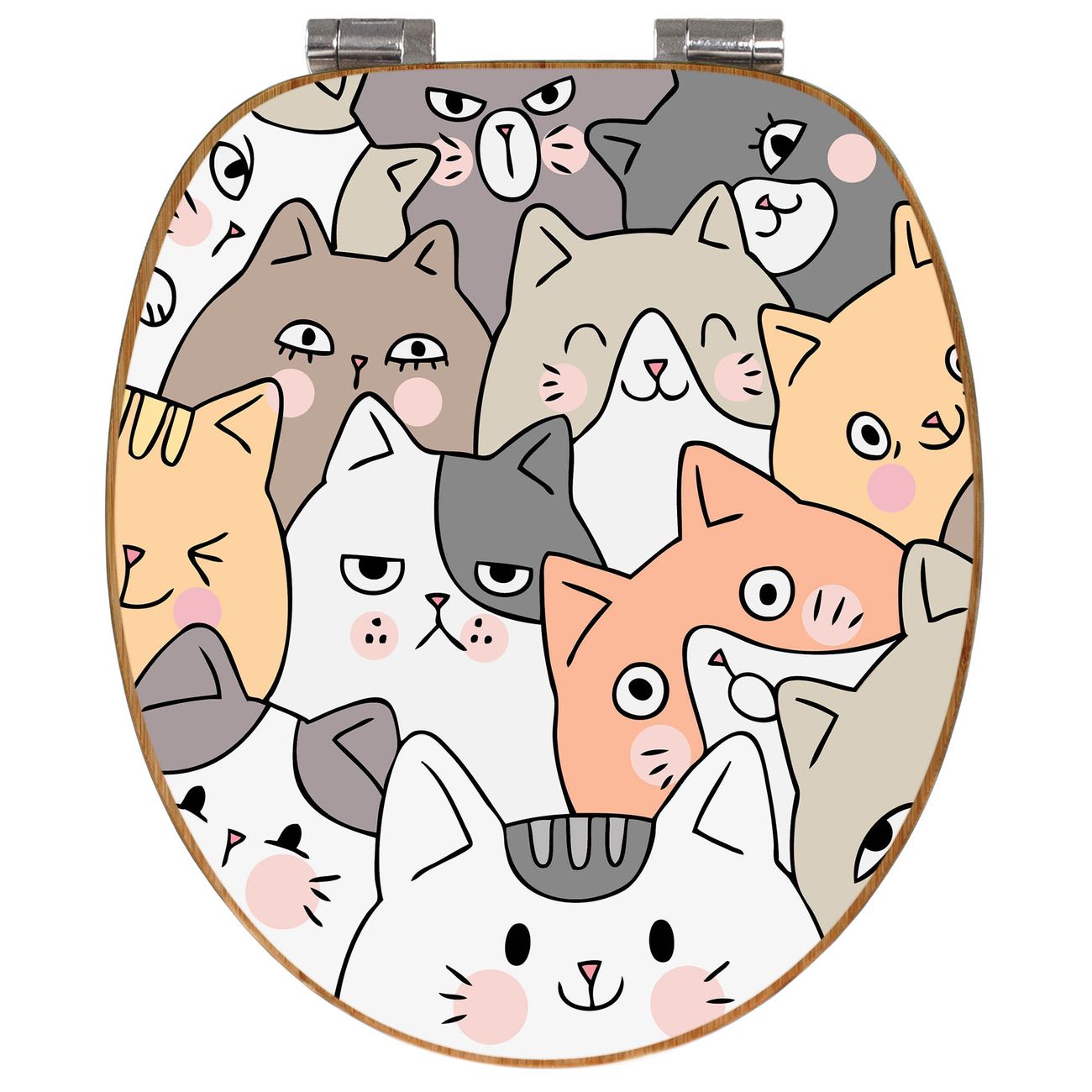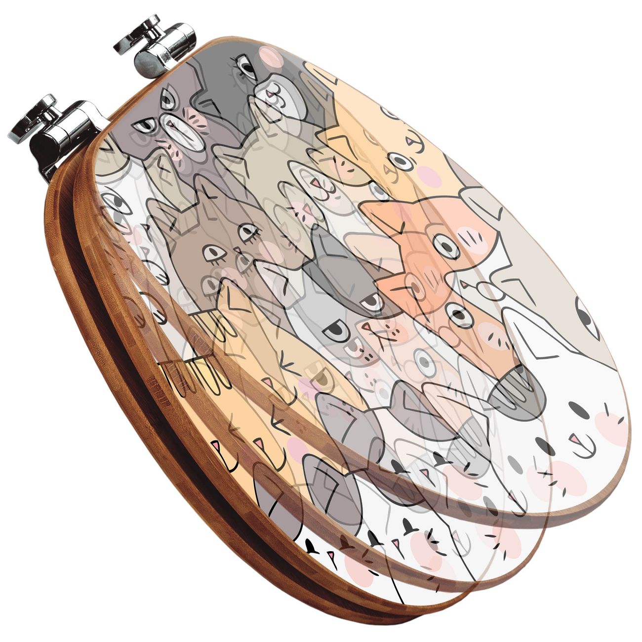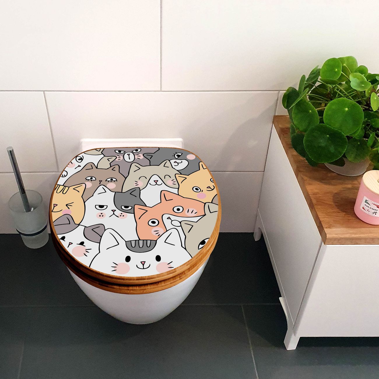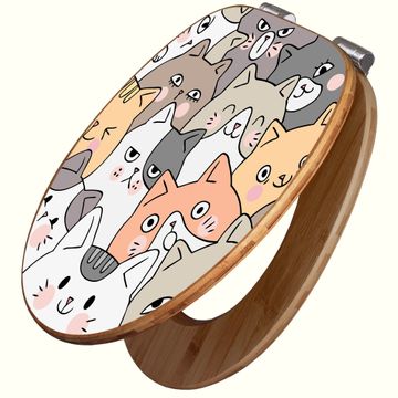 Design WC-Sitz Bambus Absenkautomatik Motiv Katzen Gruppe neugierig