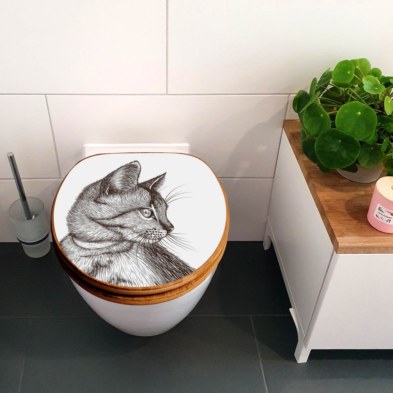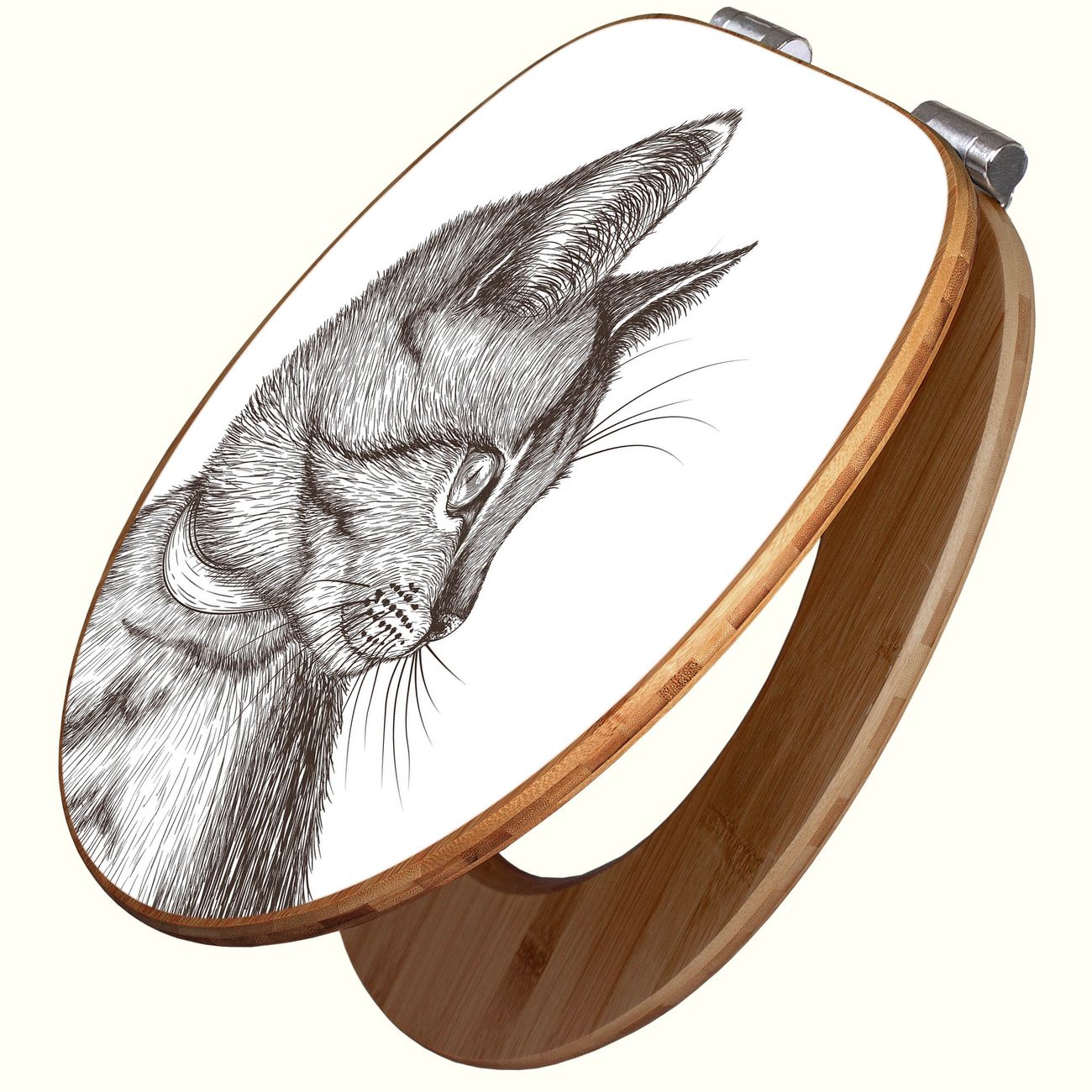 Design WC-Sitz Bambus Absenkautomatik Motiv Katzenillustration