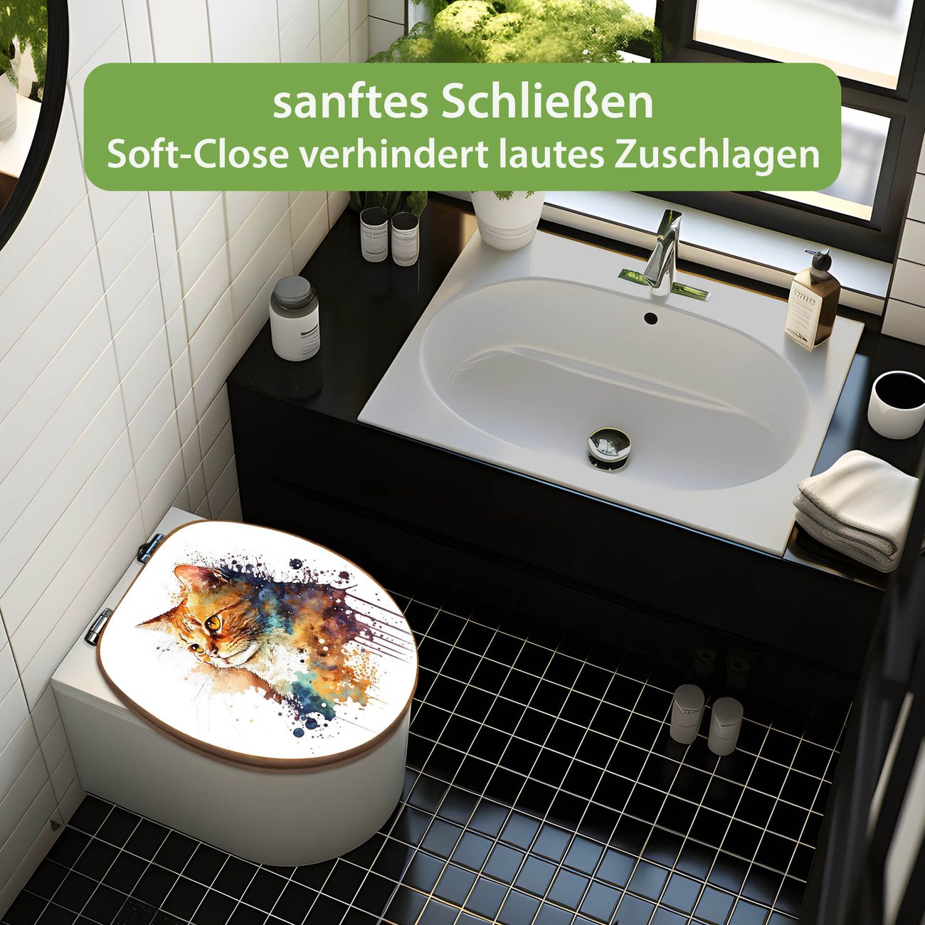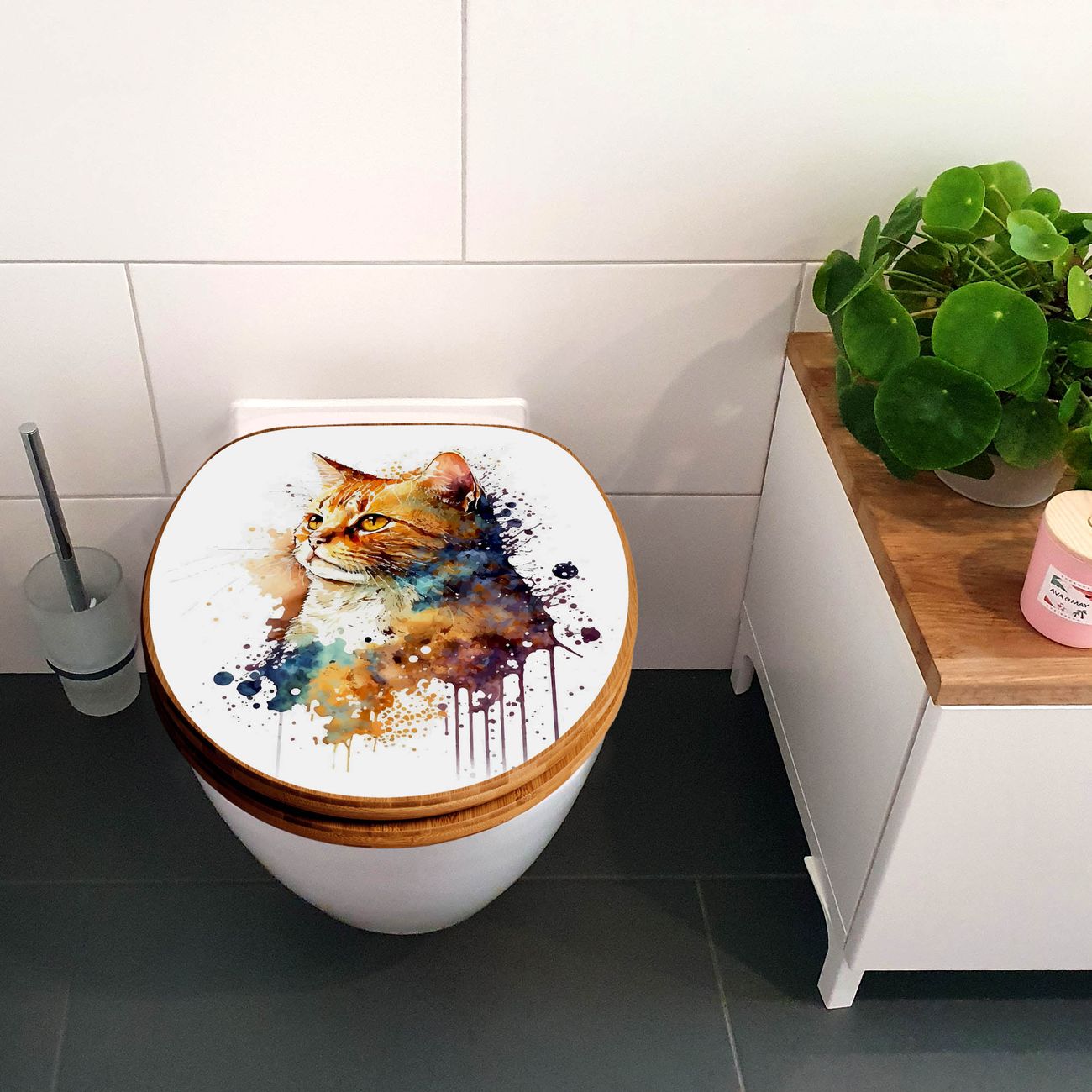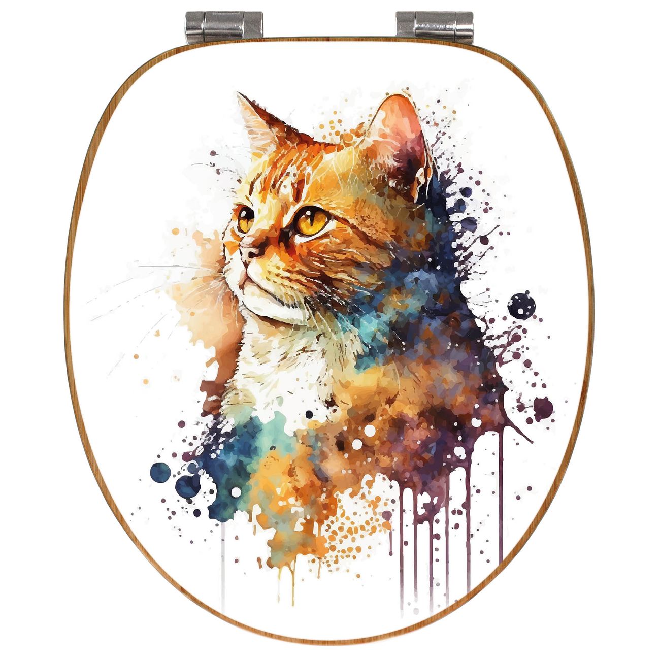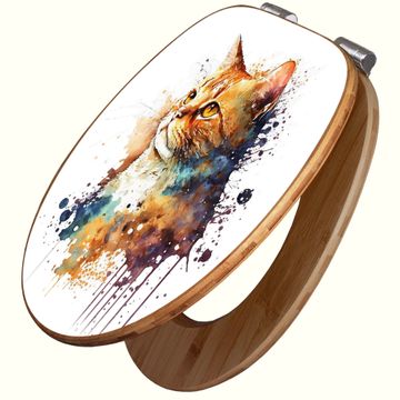 Design WC-Sitz Bambus Absenkautomatik Motiv Katzenportrait in Aquarell 1