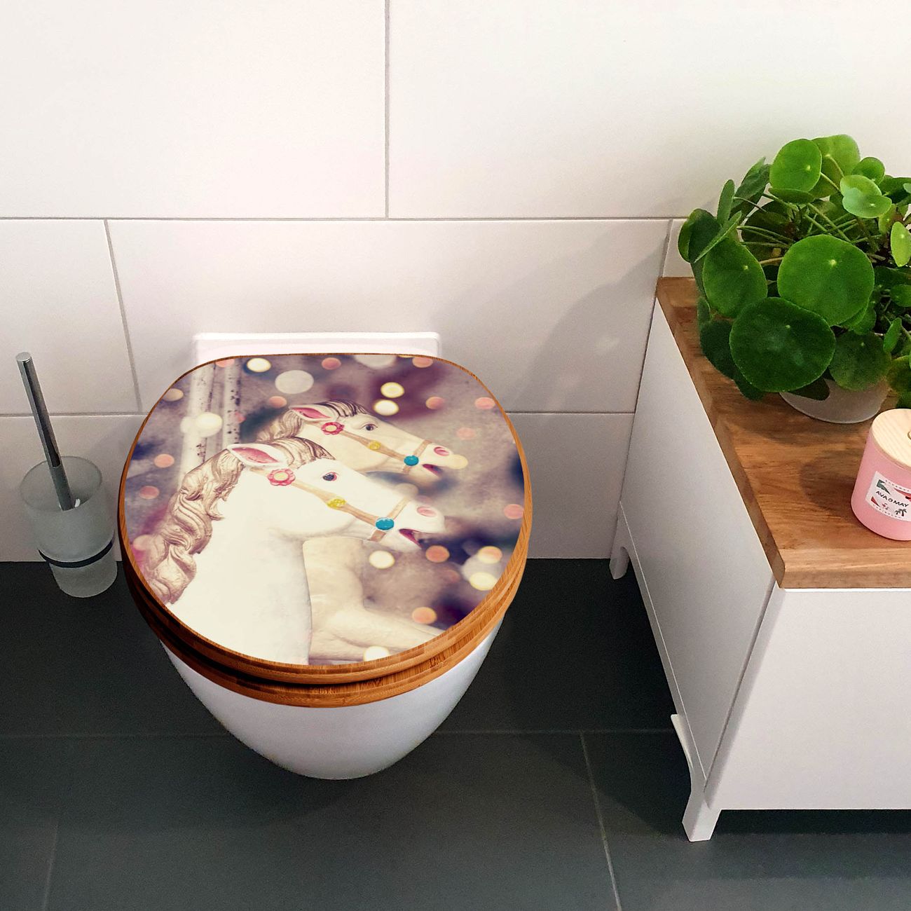 Design WC-Sitz Bambus Absenkautomatik Motiv Kinderkarussell