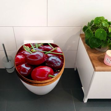 Mit dem banjado Toilettensitz in Bambus verbinden Sie Design und Funktionalität. Sie erhalten den WC-Sitz mit bewährter Holz Qualität und Universal Scharnieren. Das Motiv Motiv Kirschen besteht aus einer schutzlaminierten Motivfolie, die durch das Schutzlaminat zusätzlich vor Kratzern schützt. Durch diesen Motivdruck wird der WC-Sitz zu einem Blickfang in Ihrem Bad.