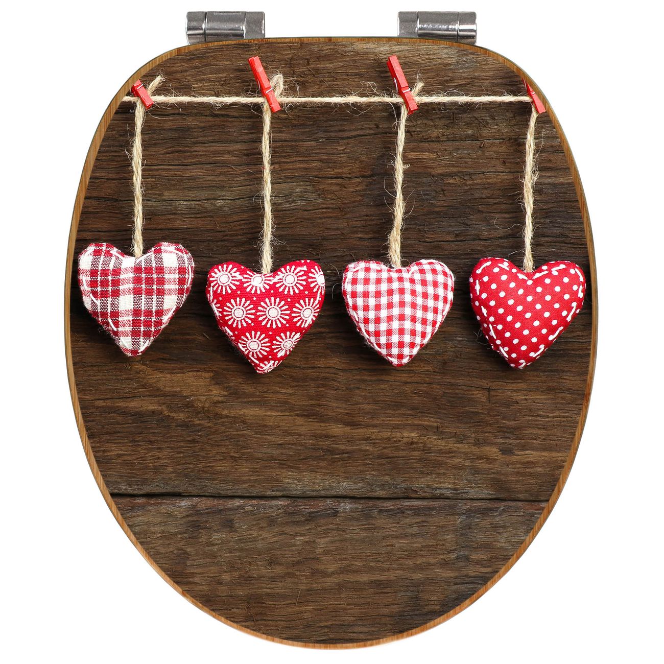 Mit dem banjado Toilettensitz in Bambus verbinden Sie Design und Funktionalität. Sie erhalten den WC-Sitz mit bewährter Holz Qualität und Universal Scharnieren. Das Motiv Motiv Kleine Herzen besteht aus einer schutzlaminierten Motivfolie, die durch das Schutzlaminat zusätzlich vor Kratzern schützt. Durch diesen Motivdruck wird der WC-Sitz zu einem Blickfang in Ihrem Bad.