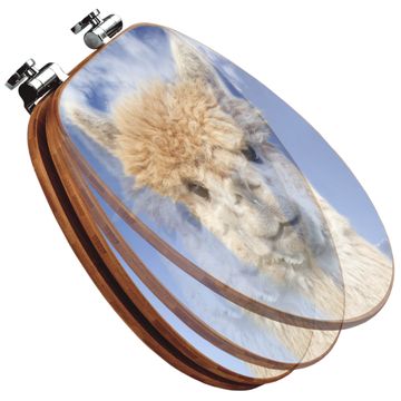 Mit dem banjado Toilettensitz in Bambus verbinden Sie Design und Funktionalität. Sie erhalten den WC-Sitz mit bewährter Holz Qualität und Universal Scharnieren. Das Motiv Motiv Lama besteht aus einer schutzlaminierten Motivfolie, die durch das Schutzlaminat zusätzlich vor Kratzern schützt. Durch diesen Motivdruck wird der WC-Sitz zu einem Blickfang in Ihrem Bad.