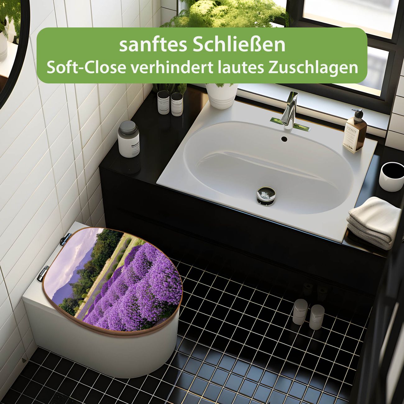 Design WC-Sitz Bambus Absenkautomatik Motiv Lavendel 1
