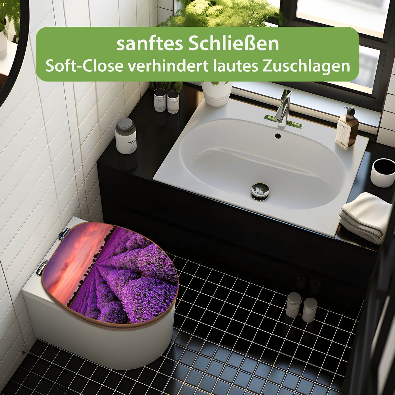 Design WC-Sitz Bambus Absenkautomatik Motiv Lavendelfeld