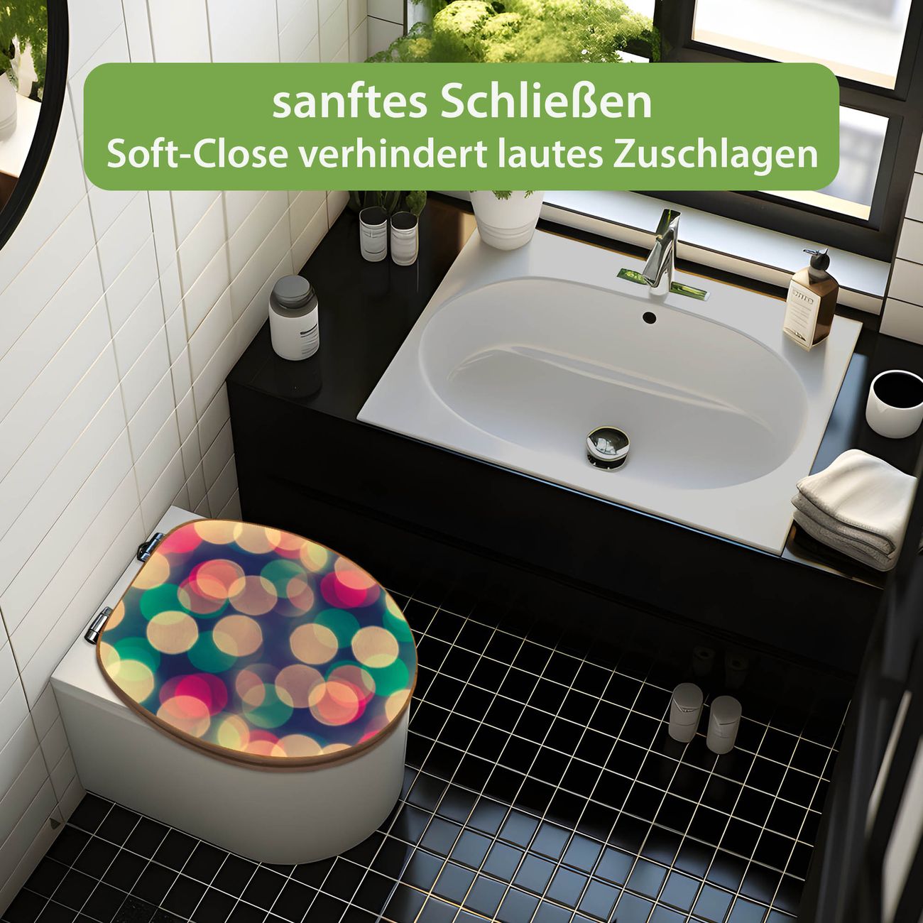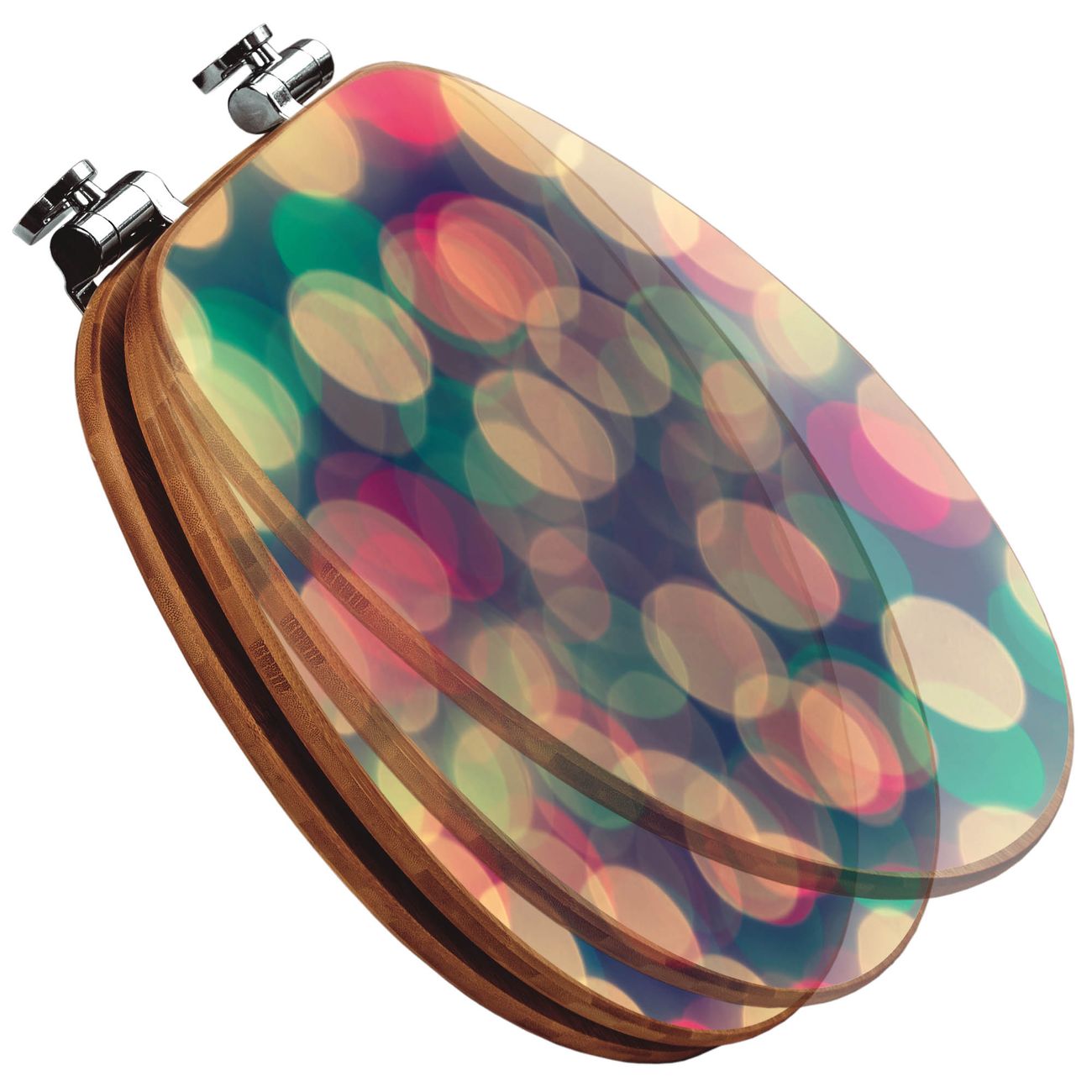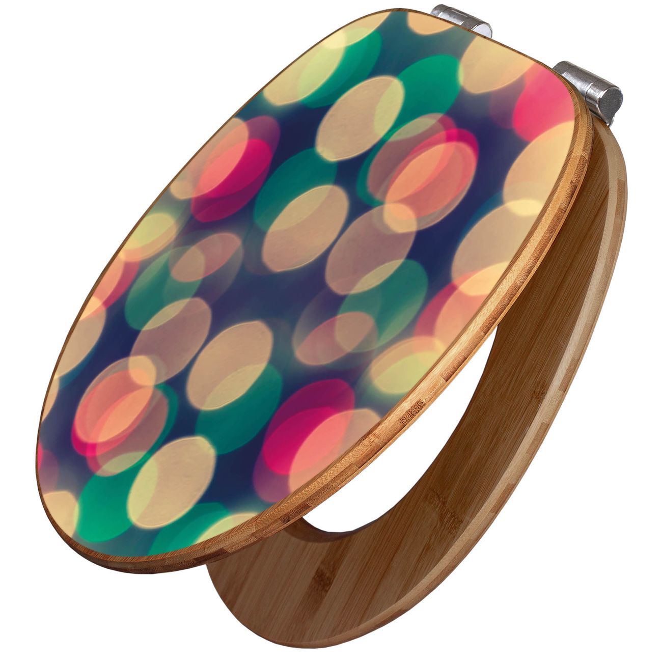 Design WC-Sitz Bambus Absenkautomatik Motiv Lichtpunkte Weiß Grün Rot
