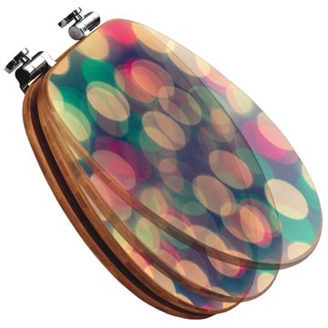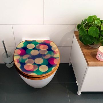Mit dem banjado Toilettensitz in Bambus verbinden Sie Design und Funktionalität. Sie erhalten den WC-Sitz mit bewährter Holz Qualität und Universal Scharnieren. Das Motiv Motiv Lichtpunkte Weiß Grün Rot besteht aus einer schutzlaminierten Motivfolie, die durch das Schutzlaminat zusätzlich vor Kratzern schützt. Durch diesen Motivdruck wird der WC-Sitz zu einem Blickfang in Ihrem Bad.