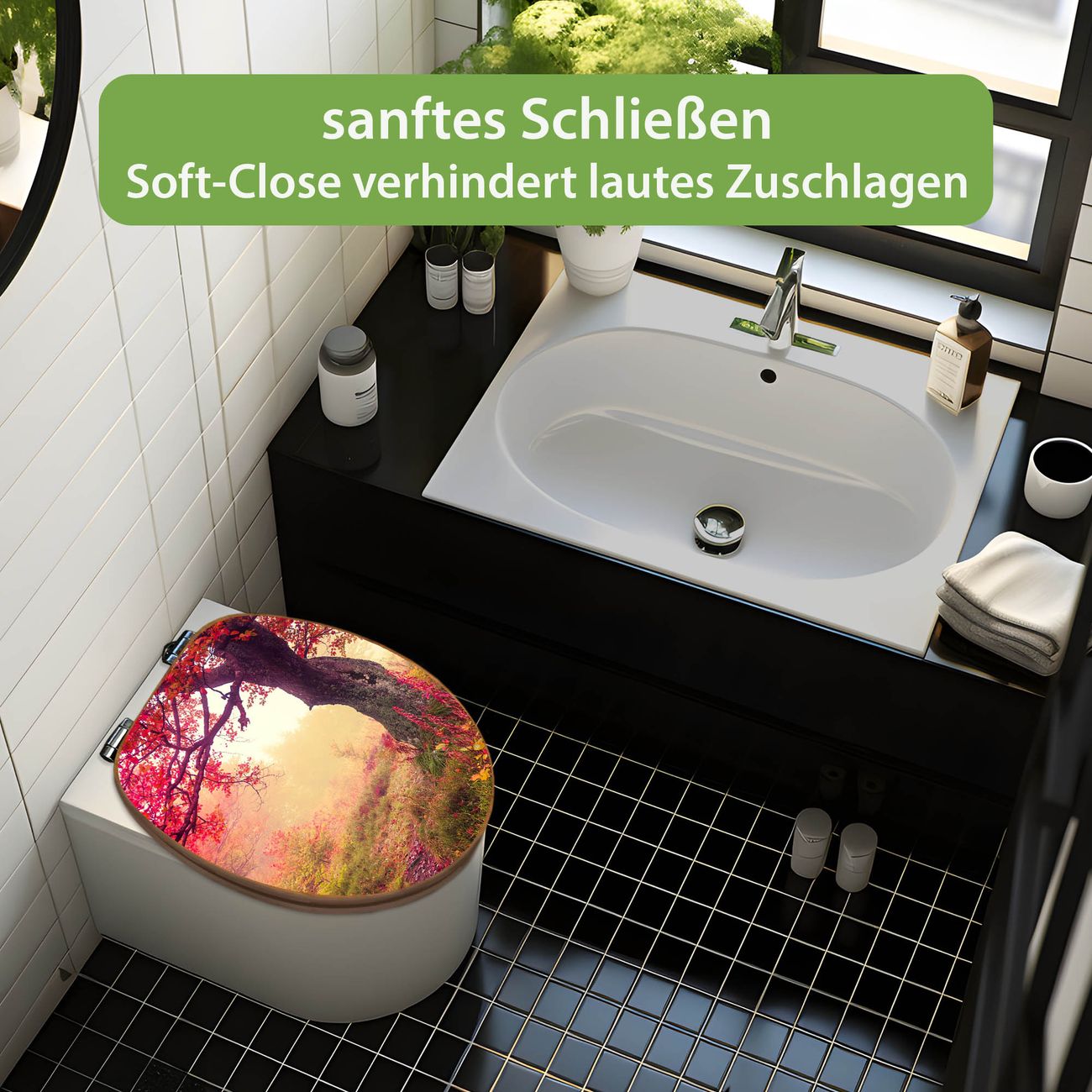 Design WC-Sitz Bambus Absenkautomatik Motiv Lichtung Im Herbst
