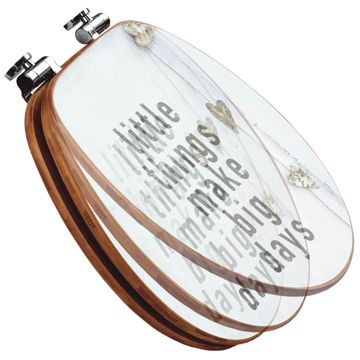 Mit dem banjado Toilettensitz in Bambus verbinden Sie Design und Funktionalität. Sie erhalten den WC-Sitz mit bewährter Holz Qualität und Universal Scharnieren. Das Motiv Motiv Little Things besteht aus einer schutzlaminierten Motivfolie, die durch das Schutzlaminat zusätzlich vor Kratzern schützt. Durch diesen Motivdruck wird der WC-Sitz zu einem Blickfang in Ihrem Bad.