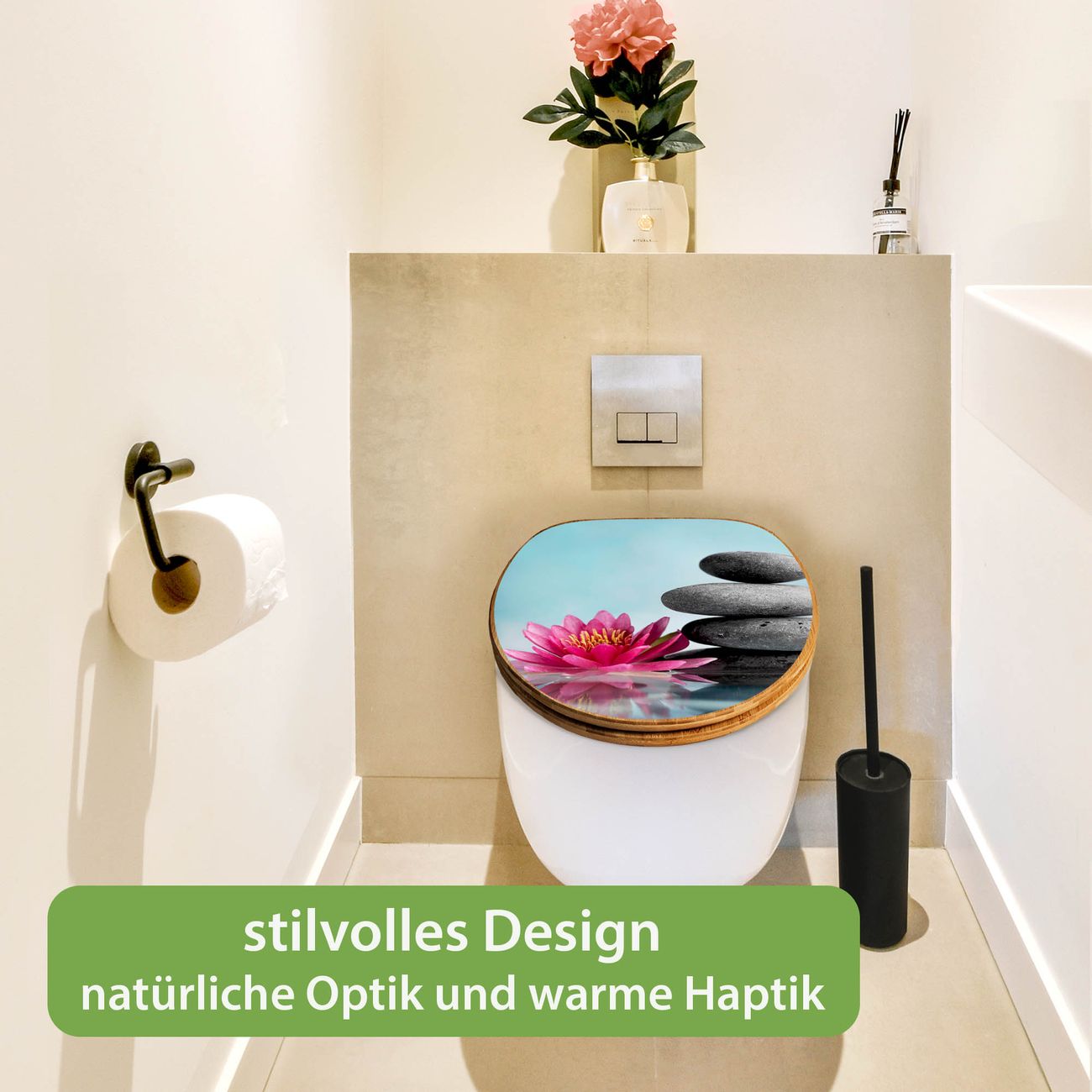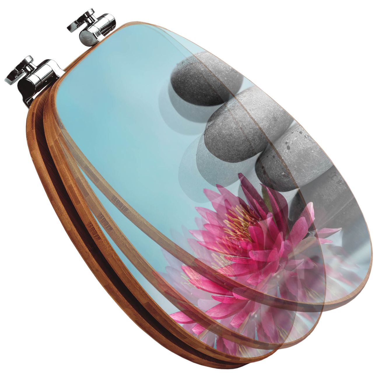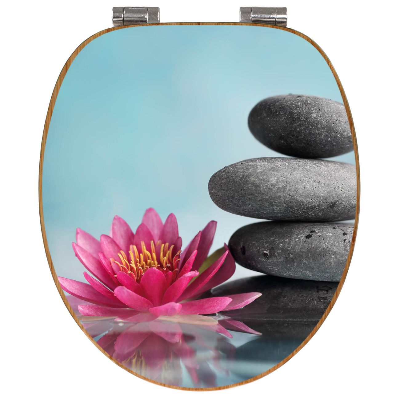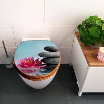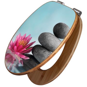 Design WC-Sitz Bambus Absenkautomatik Motiv Lotus Und Steine