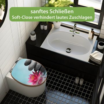 Mit dem banjado Toilettensitz in Bambus verbinden Sie Design und Funktionalität. Sie erhalten den WC-Sitz mit bewährter Holz Qualität und Universal Scharnieren. Das Motiv Motiv Lotus Und Steine besteht aus einer schutzlaminierten Motivfolie, die durch das Schutzlaminat zusätzlich vor Kratzern schützt. Durch diesen Motivdruck wird der WC-Sitz zu einem Blickfang in Ihrem Bad.
