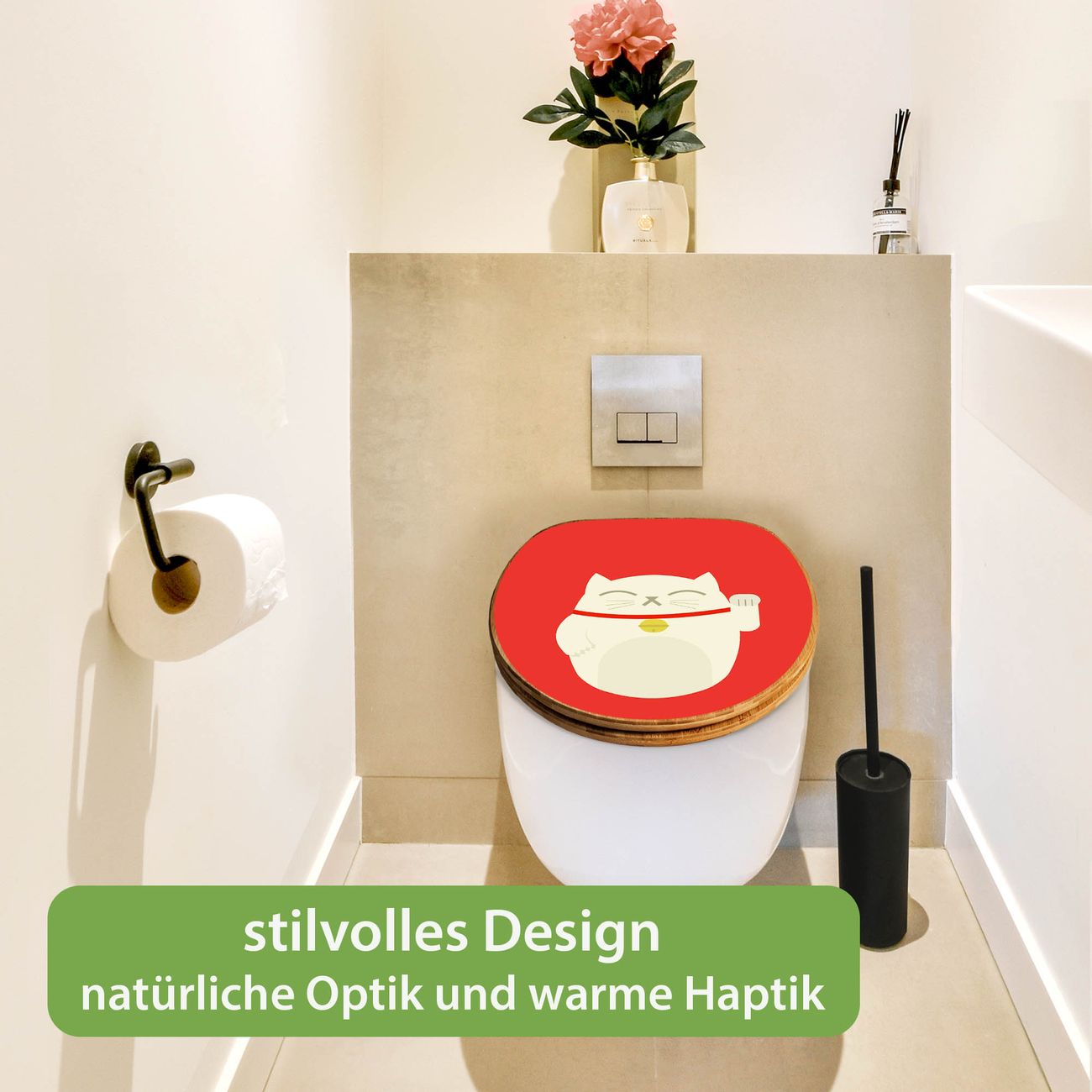 Design WC-Sitz Bambus Absenkautomatik Motiv Manekineko