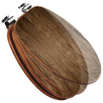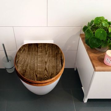 Mit dem banjado Toilettensitz in Bambus verbinden Sie Design und Funktionalität. Sie erhalten den WC-Sitz mit bewährter Holz Qualität und Universal Scharnieren. Das Motiv Motiv Maserung Dunkel besteht aus einer schutzlaminierten Motivfolie, die durch das Schutzlaminat zusätzlich vor Kratzern schützt. Durch diesen Motivdruck wird der WC-Sitz zu einem Blickfang in Ihrem Bad.