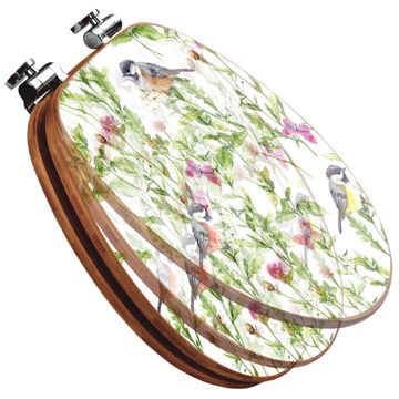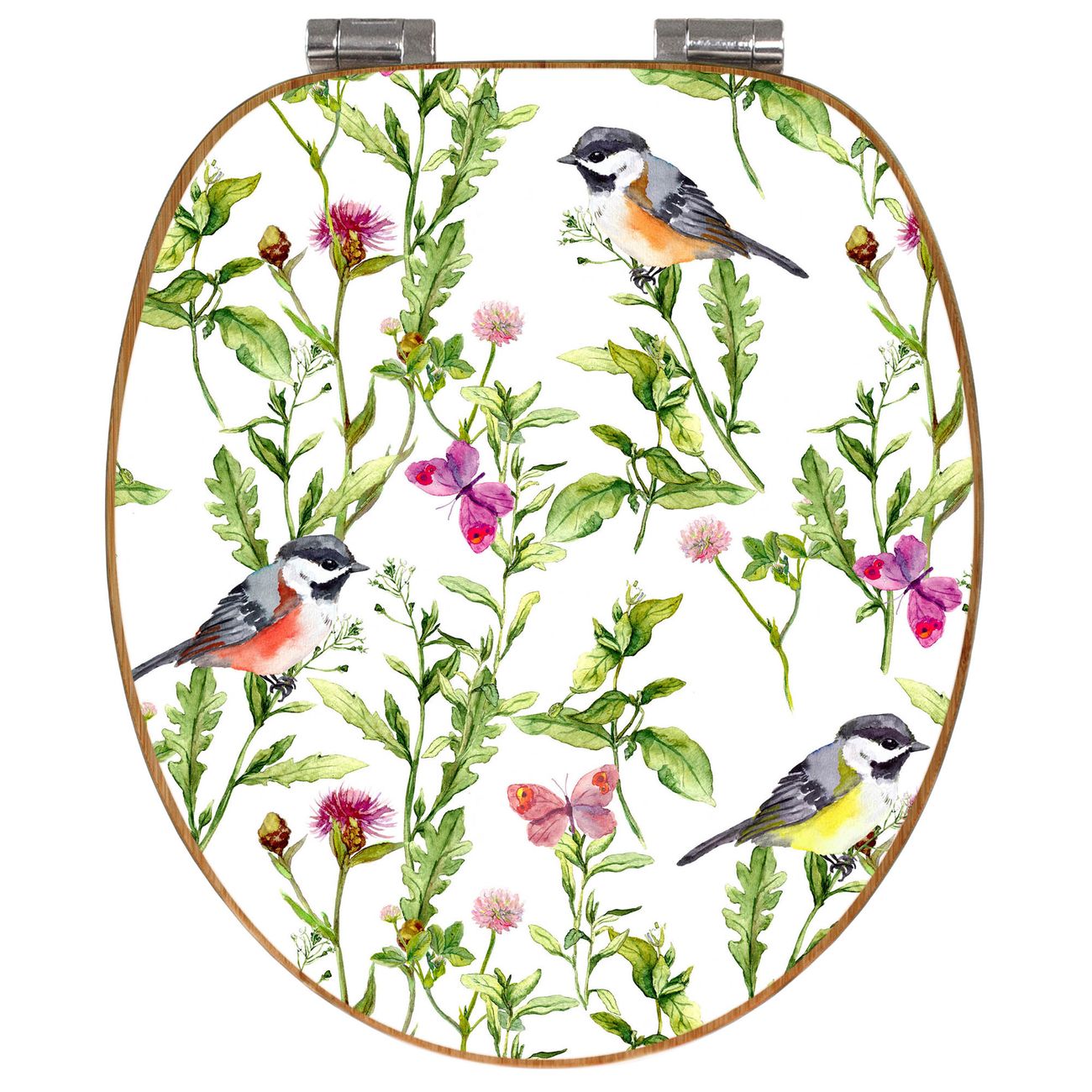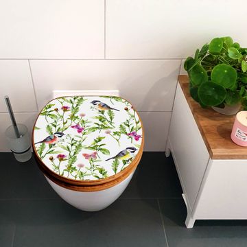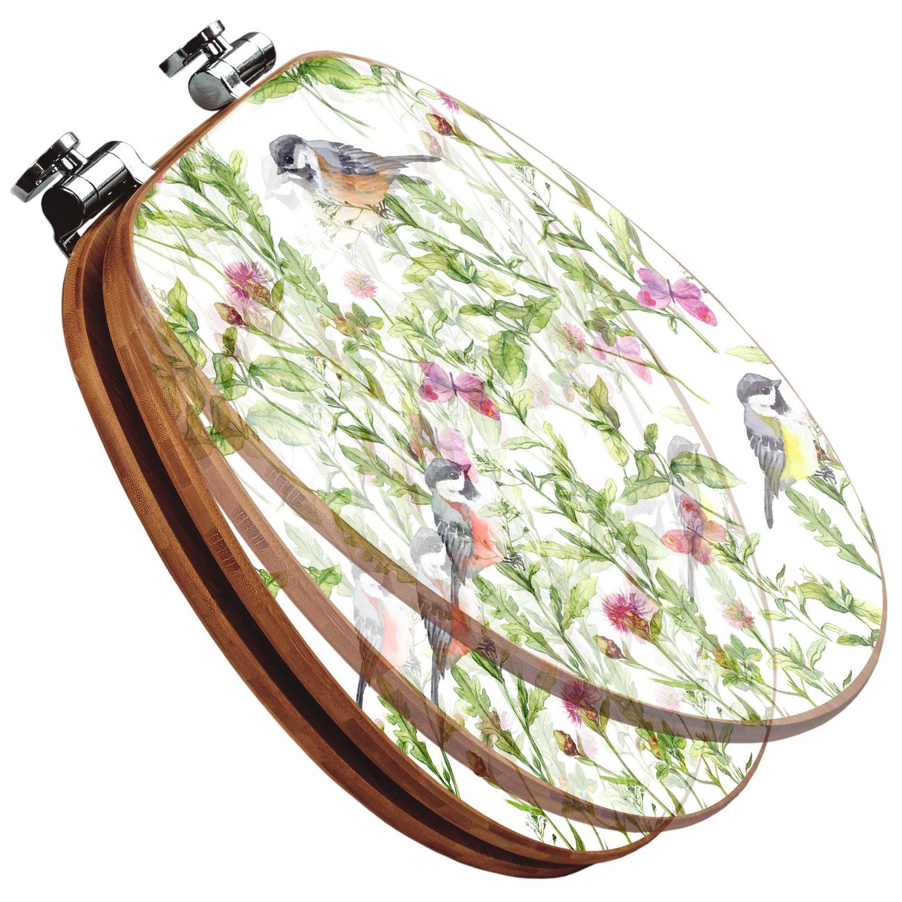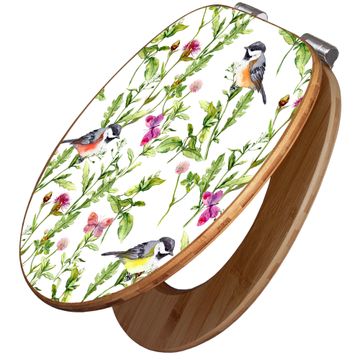Design WC-Sitz Bambus Absenkautomatik Motiv Meisen im Klee