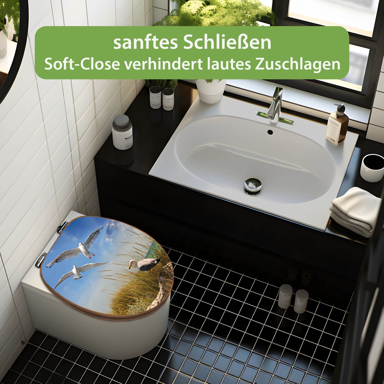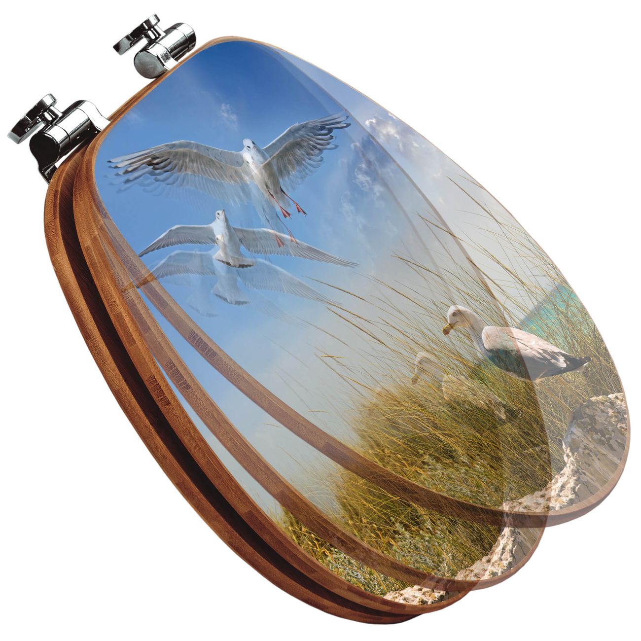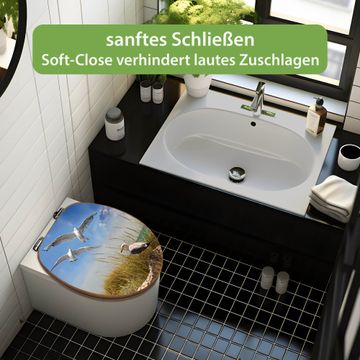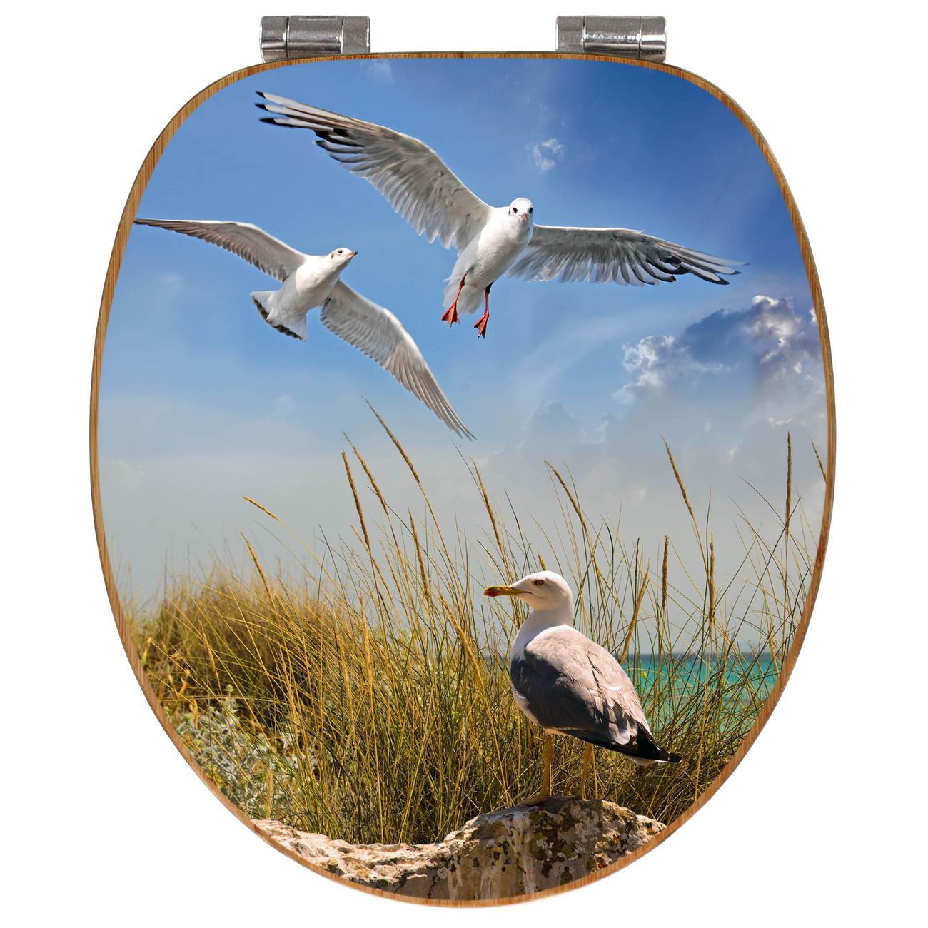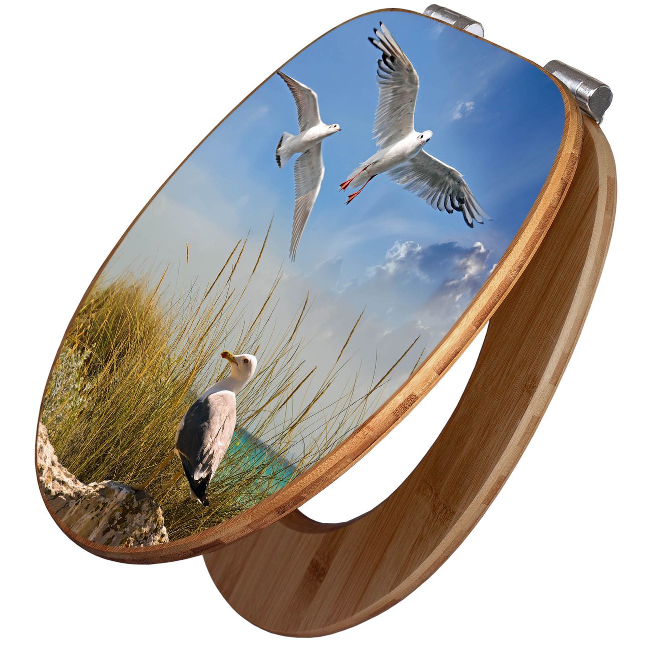 Design WC-Sitz Bambus Absenkautomatik Motiv Möwen