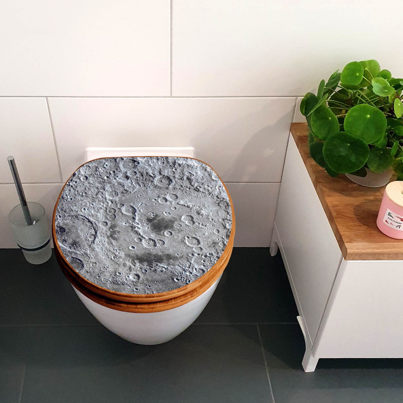 Mit dem banjado Toilettensitz in Bambus verbinden Sie Design und Funktionalität. Sie erhalten den WC-Sitz mit bewährter Holz Qualität und Universal Scharnieren. Das Motiv Motiv Mondoberfläche besteht aus einer schutzlaminierten Motivfolie, die durch das Schutzlaminat zusätzlich vor Kratzern schützt. Durch diesen Motivdruck wird der WC-Sitz zu einem Blickfang in Ihrem Bad.