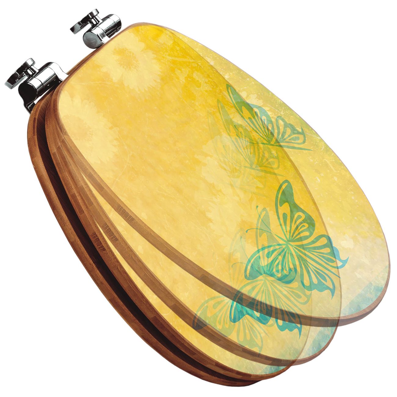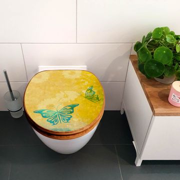 Mit dem banjado Toilettensitz in Bambus verbinden Sie Design und Funktionalität. Sie erhalten den WC-Sitz mit bewährter Holz Qualität und Universal Scharnieren. Das Motiv Motiv Muster Sommer besteht aus einer schutzlaminierten Motivfolie, die durch das Schutzlaminat zusätzlich vor Kratzern schützt. Durch diesen Motivdruck wird der WC-Sitz zu einem Blickfang in Ihrem Bad.
