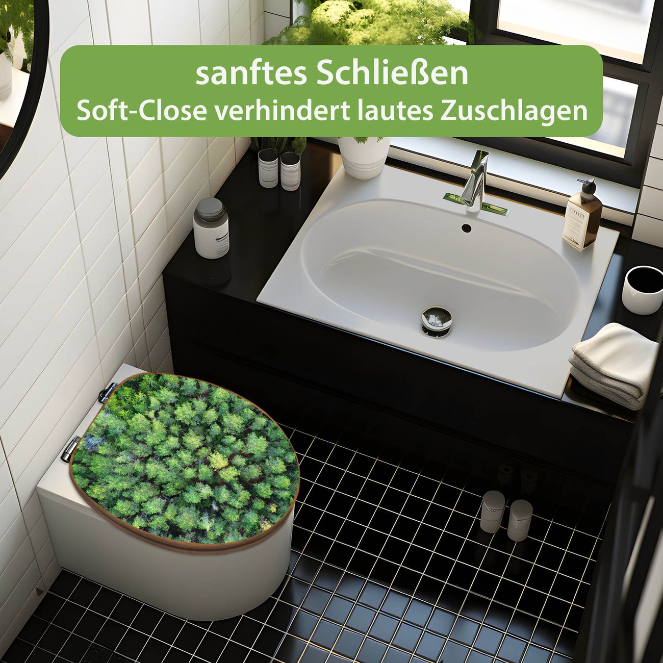 Design WC-Sitz Bambus Absenkautomatik Motiv Nadelwald