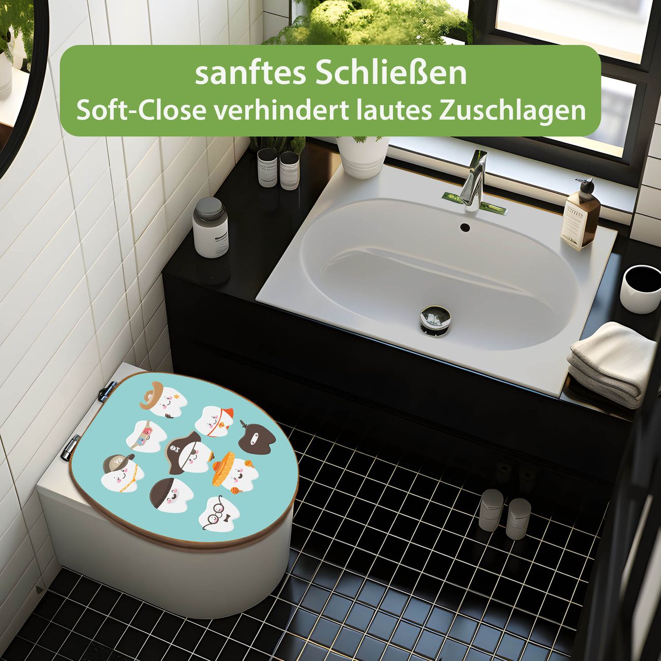 Design WC-Sitz Bambus Absenkautomatik Motiv Neun Zähne