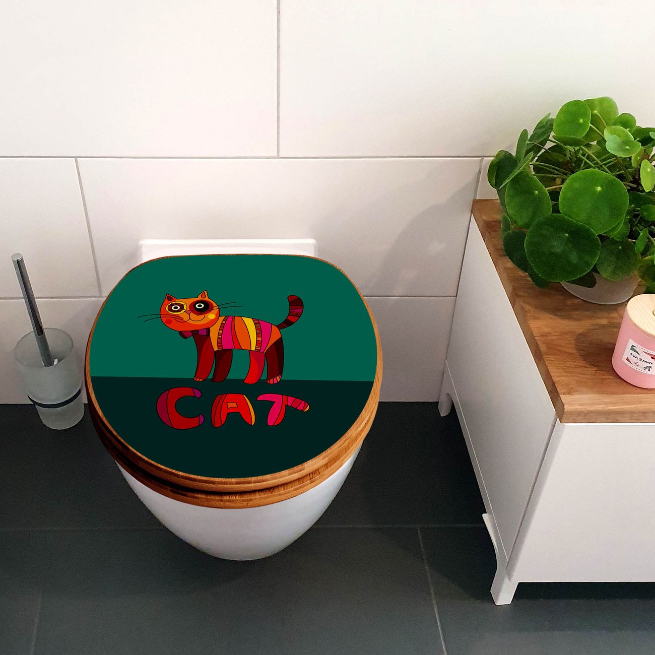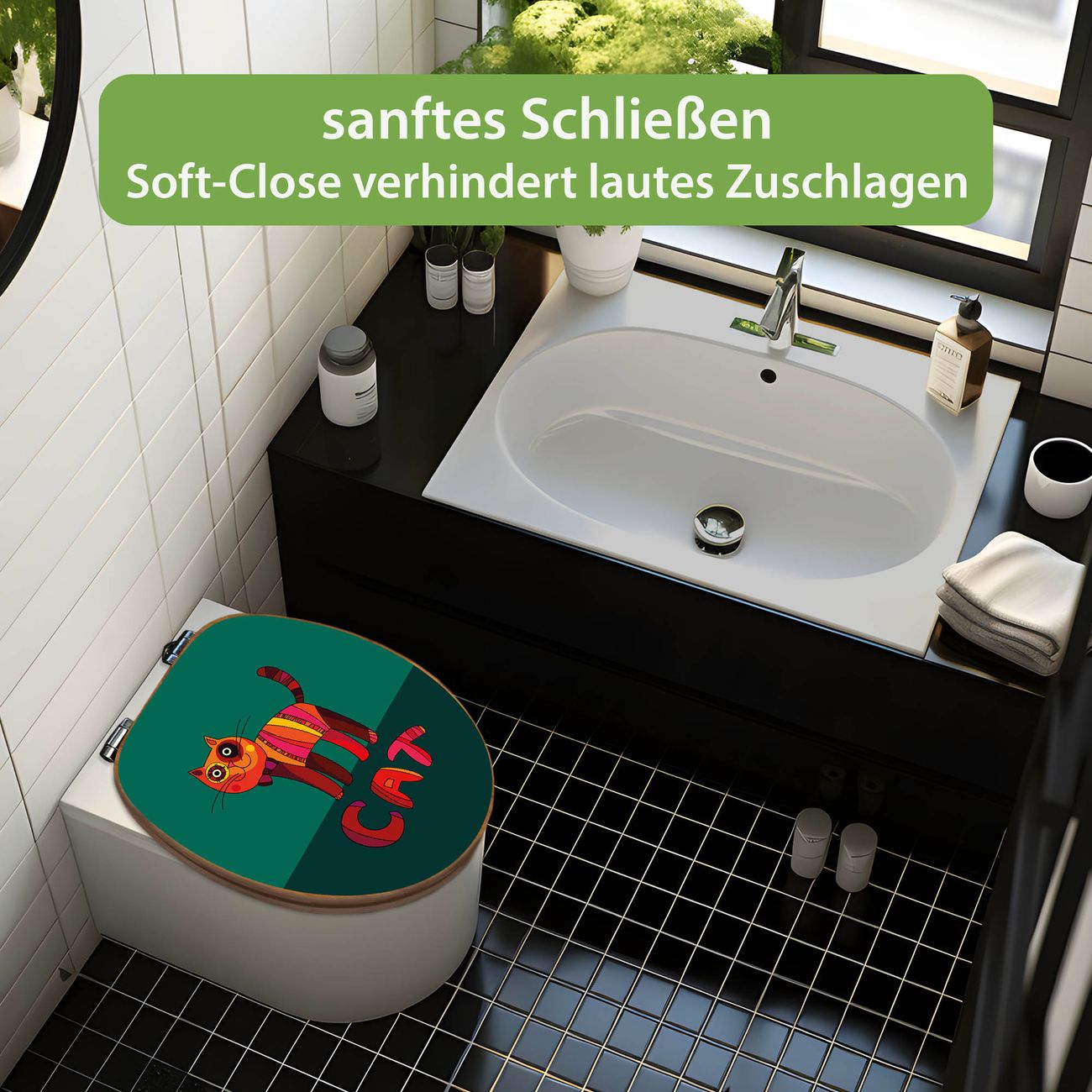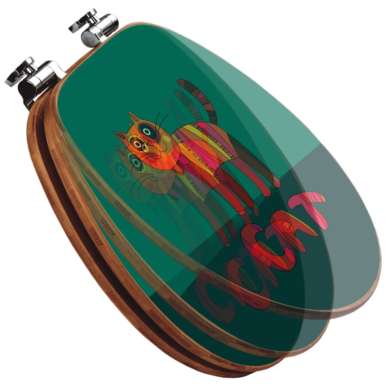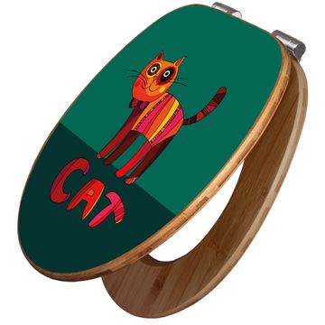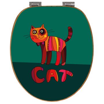 Design WC-Sitz Bambus Absenkautomatik Motiv Orange Katze