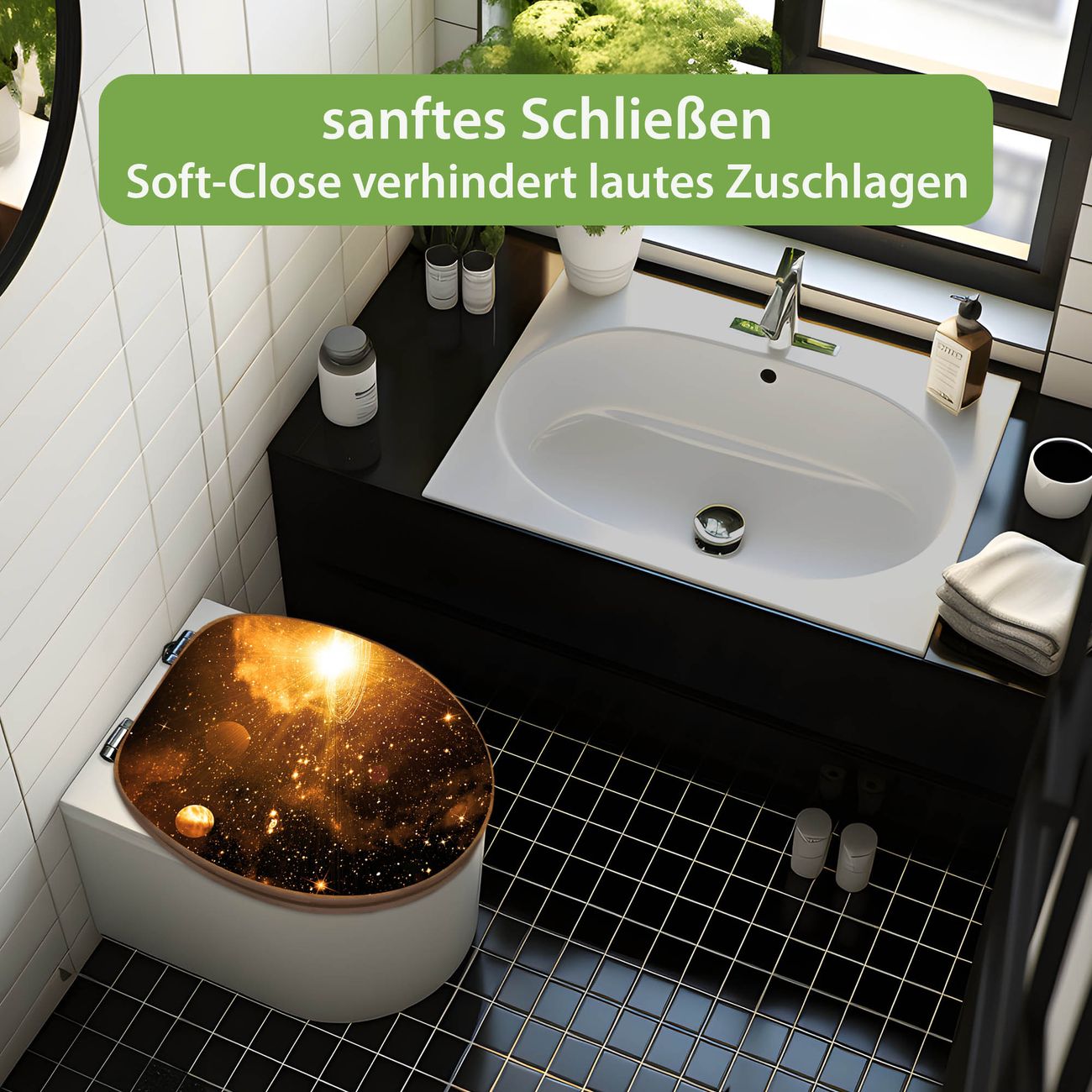 Design WC-Sitz Bambus Absenkautomatik Motiv Outer Space