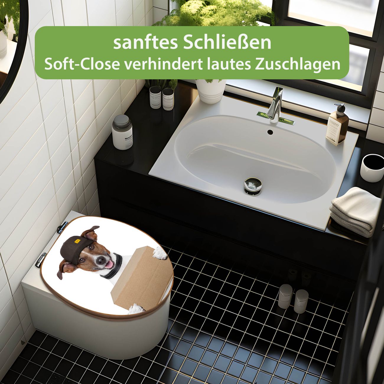 Design WC-Sitz Bambus Absenkautomatik Motiv Paketdienst Jack Russel
