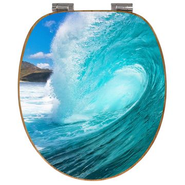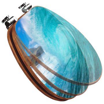 Mit dem banjado Toilettensitz in Bambus verbinden Sie Design und Funktionalität. Sie erhalten den WC-Sitz mit bewährter Holz Qualität und Universal Scharnieren. Das Motiv Motiv Perfekte Welle besteht aus einer schutzlaminierten Motivfolie, die durch das Schutzlaminat zusätzlich vor Kratzern schützt. Durch diesen Motivdruck wird der WC-Sitz zu einem Blickfang in Ihrem Bad.
