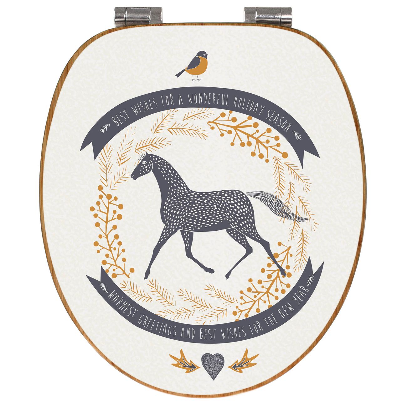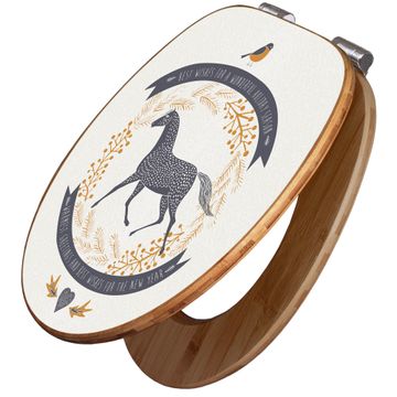 Design WC-Sitz Bambus Absenkautomatik Motiv Pferd und Vogel