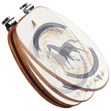 Mit dem banjado Toilettensitz in Bambus verbinden Sie Design und Funktionalität. Sie erhalten den WC-Sitz mit bewährter Holz Qualität und Universal Scharnieren. Das Motiv Motiv Pferd und Vogel besteht aus einer schutzlaminierten Motivfolie, die durch das Schutzlaminat zusätzlich vor Kratzern schützt. Durch diesen Motivdruck wird der WC-Sitz zu einem Blickfang in Ihrem Bad.