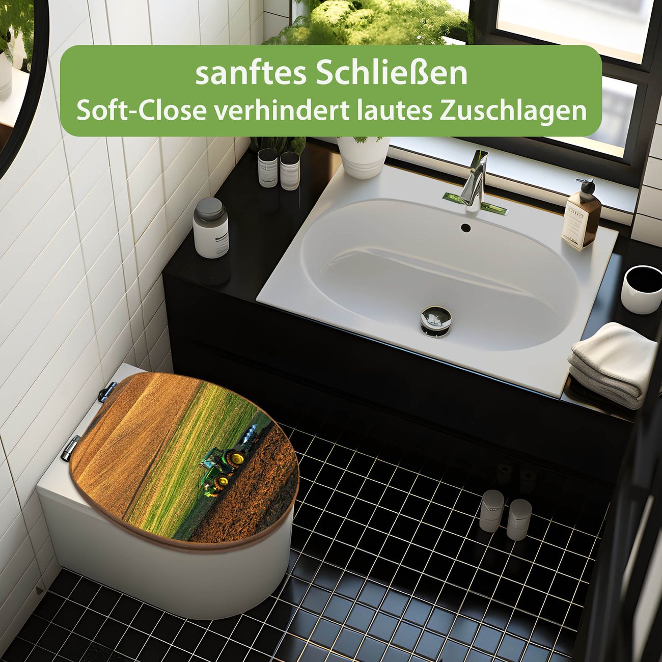 Design WC-Sitz Bambus Absenkautomatik Motiv Pflügen
