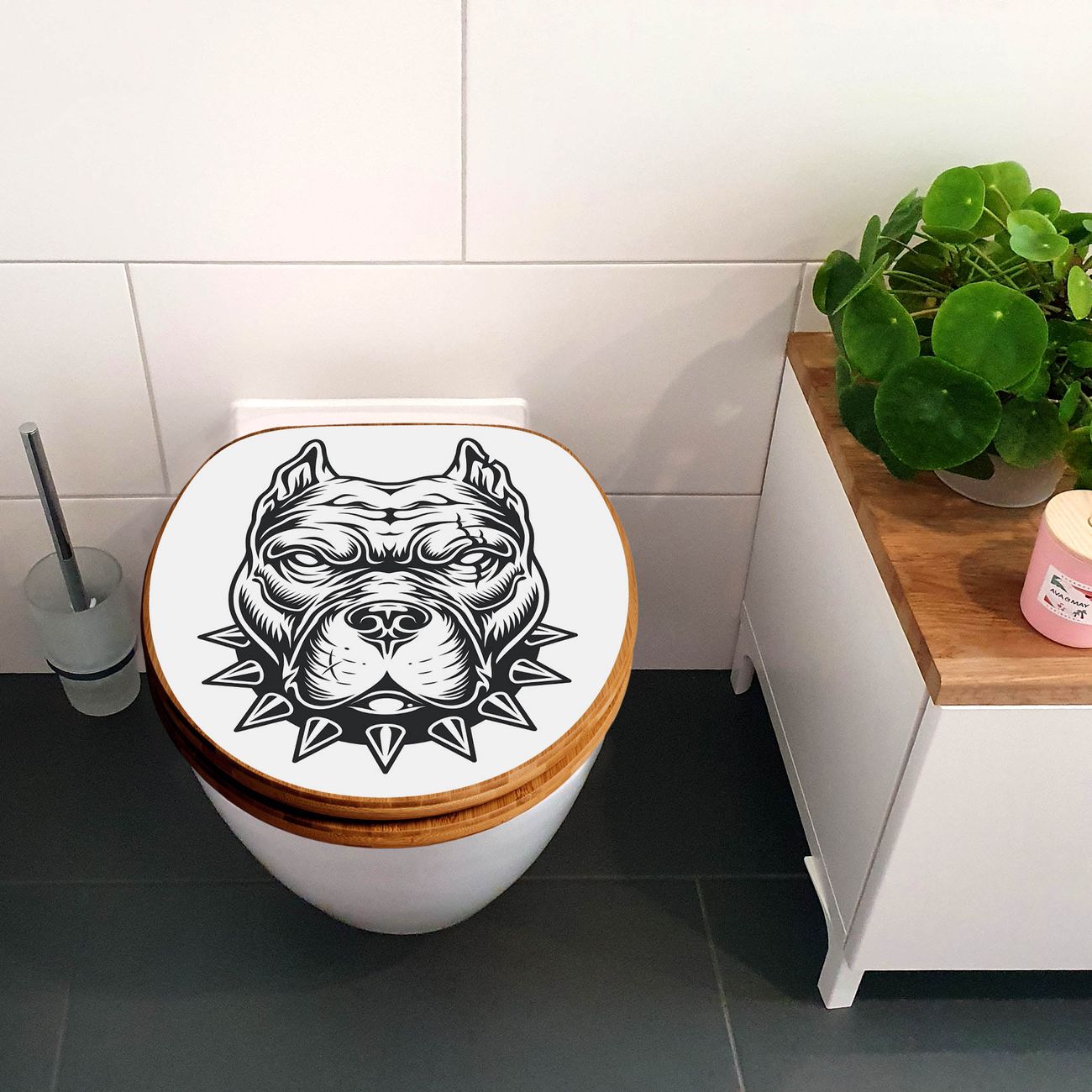 Design WC-Sitz Bambus Absenkautomatik Motiv Pitbull Silhouette