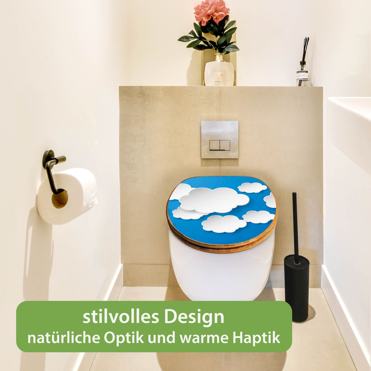 Design WC-Sitz Bambus Absenkautomatik Motiv Plastische Wolken