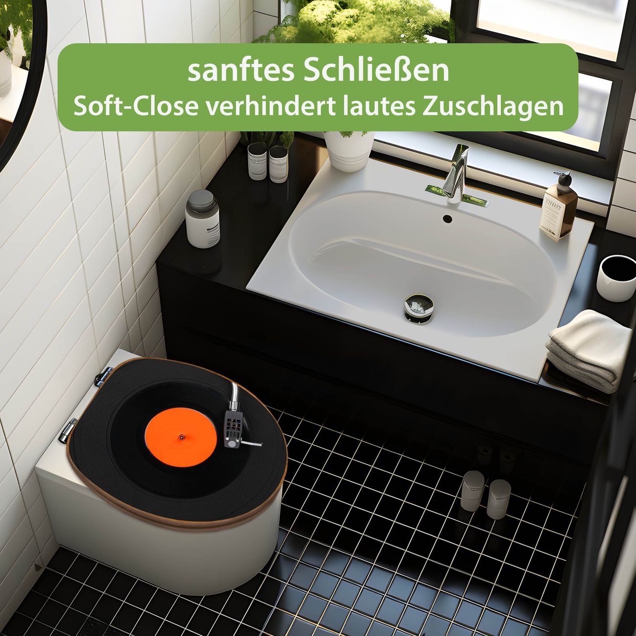 Design WC-Sitz Bambus Absenkautomatik Motiv Plattenspieler
