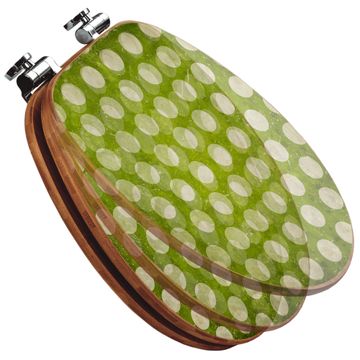 Mit dem banjado Toilettensitz in Bambus verbinden Sie Design und Funktionalität. Sie erhalten den WC-Sitz mit bewährter Holz Qualität und Universal Scharnieren. Das Motiv Motiv Punkte Grün Vintage besteht aus einer schutzlaminierten Motivfolie, die durch das Schutzlaminat zusätzlich vor Kratzern schützt. Durch diesen Motivdruck wird der WC-Sitz zu einem Blickfang in Ihrem Bad.