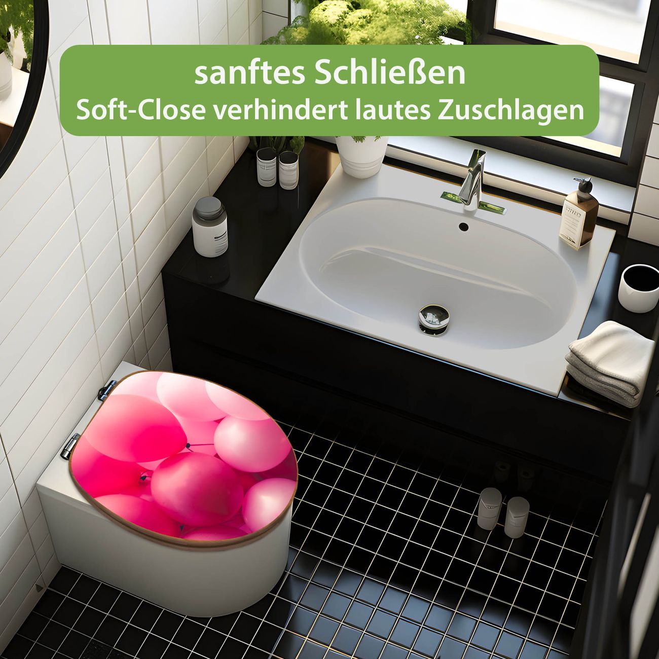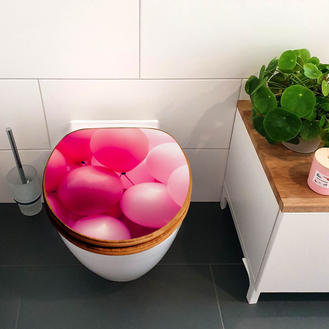 Design WC-Sitz Bambus Absenkautomatik Motiv Rosa Ballons 2