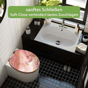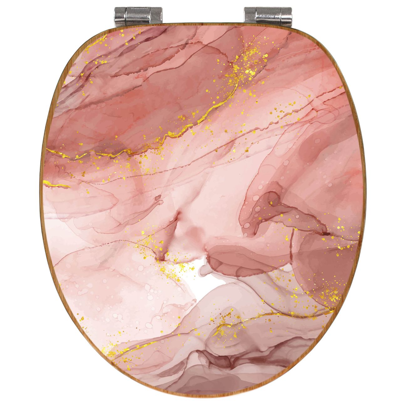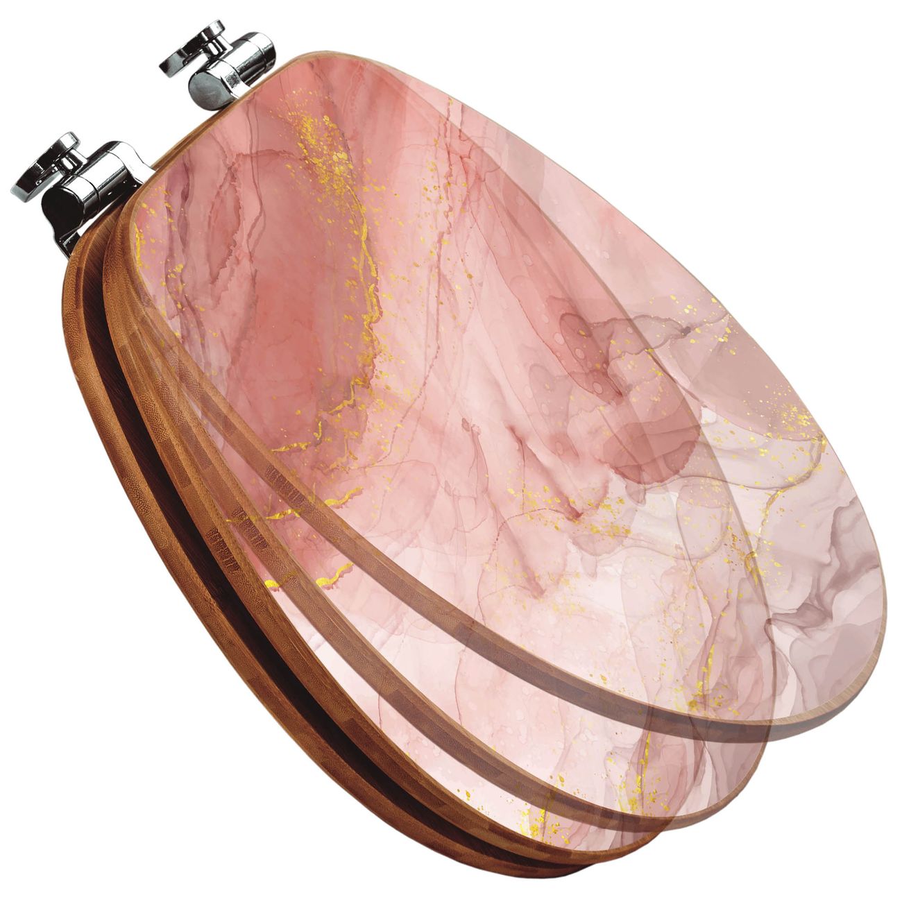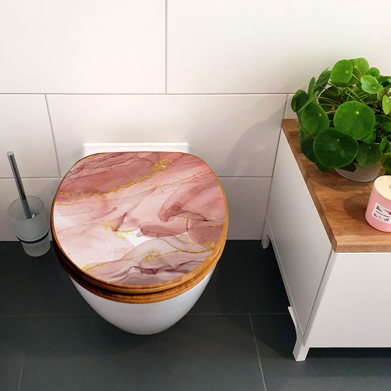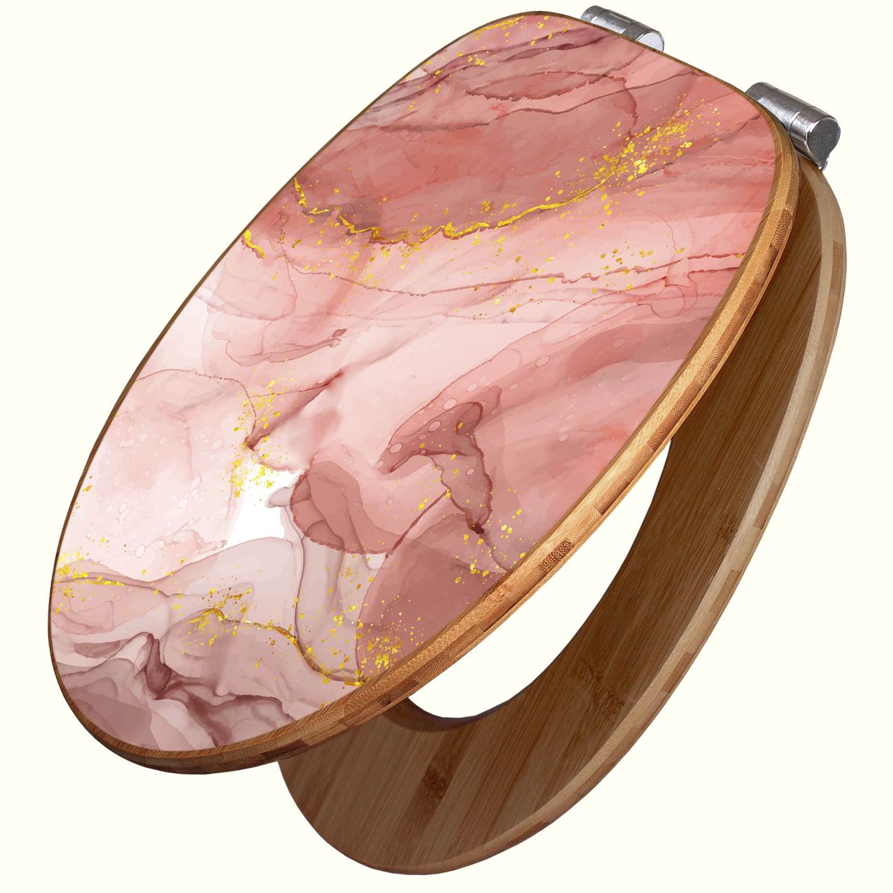 Design WC-Sitz Bambus Absenkautomatik Motiv Rosa Marmor mit Gold 1