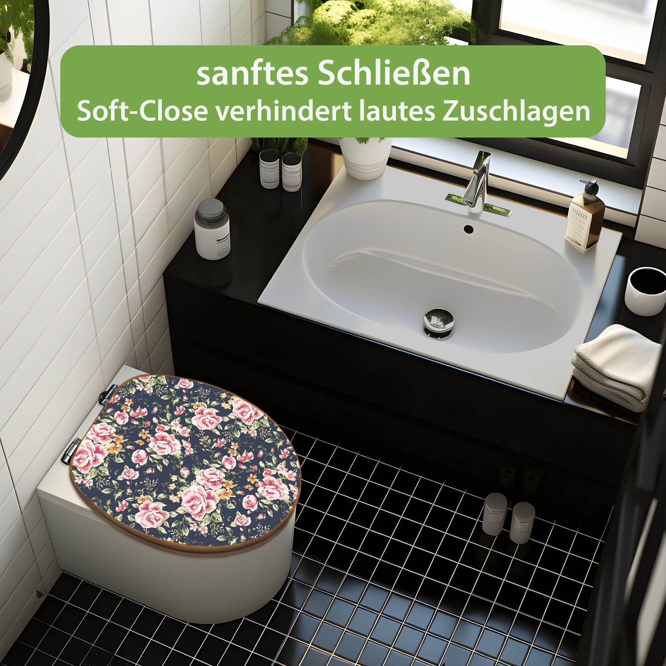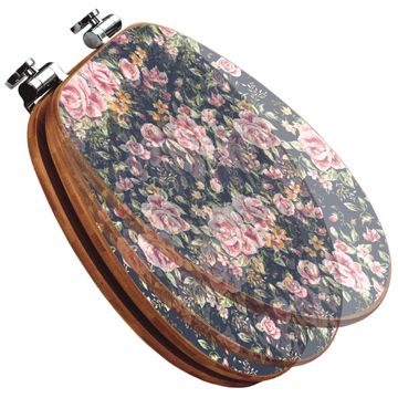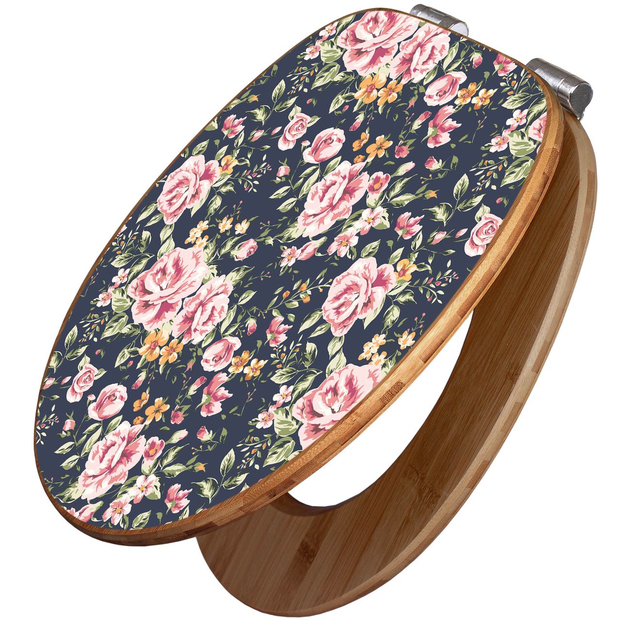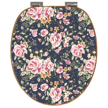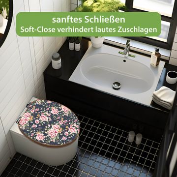 Design WC-Sitz Bambus Absenkautomatik Motiv Rosen Auf Anthrazit