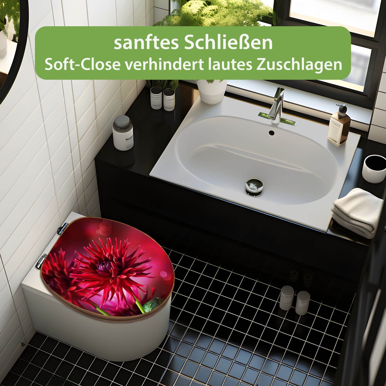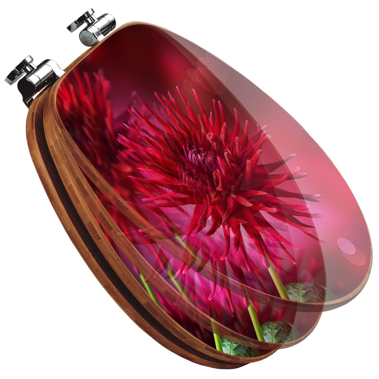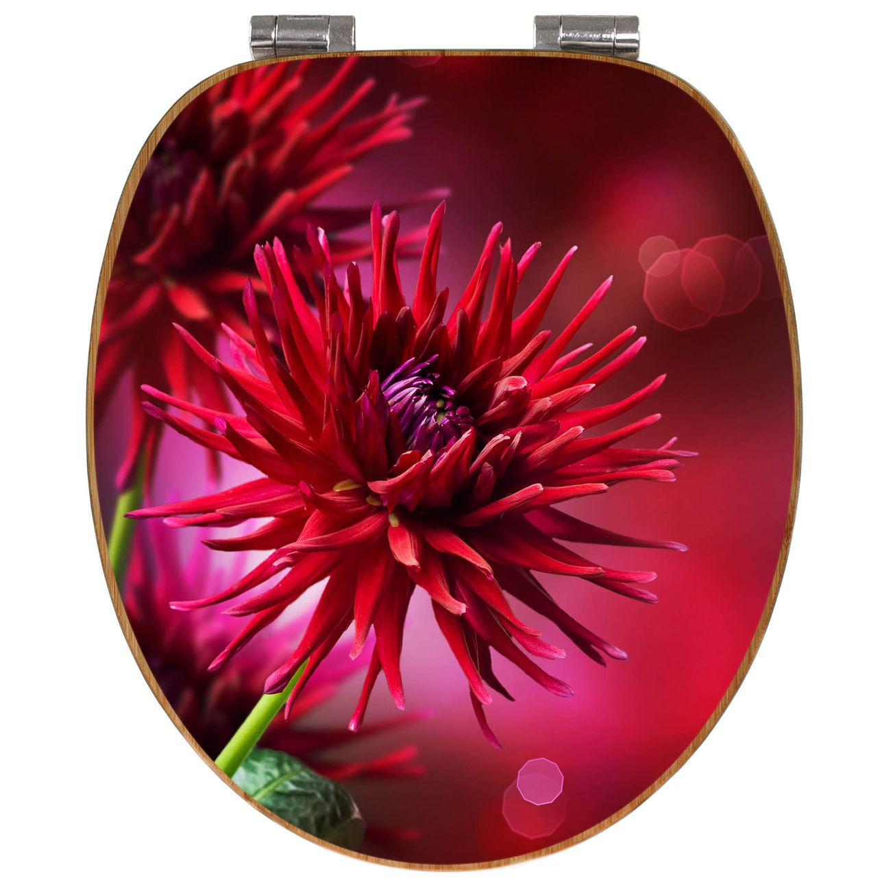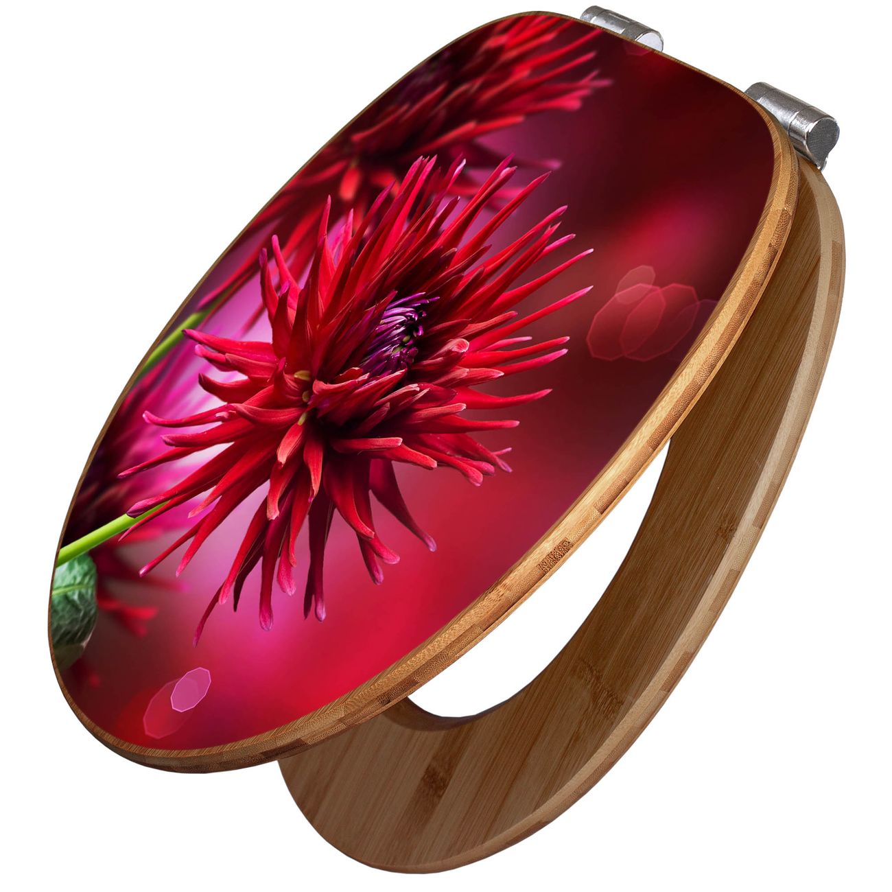Design WC-Sitz Bambus Absenkautomatik Motiv Rote Dahlien