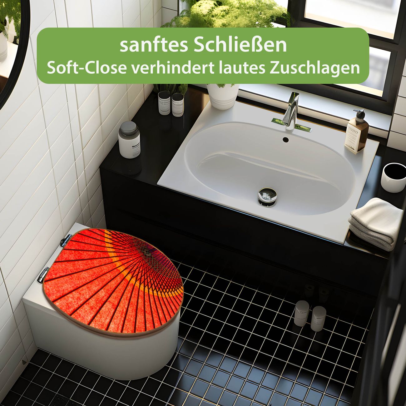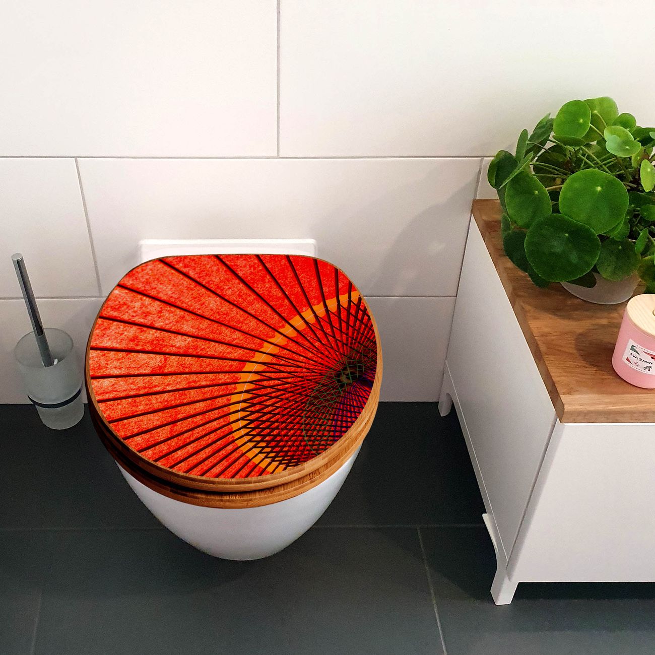 Design WC-Sitz Bambus Absenkautomatik Motiv Roter Schirm