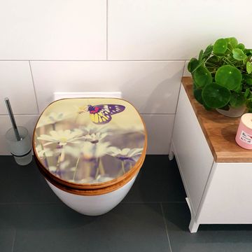Design WC-Sitz Bambus Absenkautomatik Motiv Rotgelber Falter
