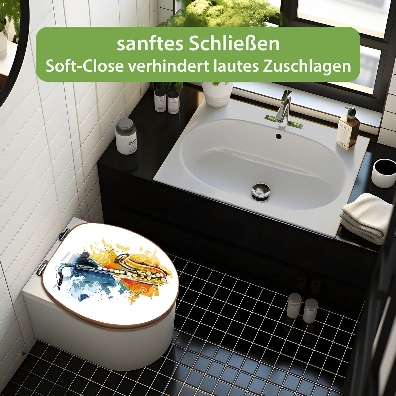 Design WC-Sitz Bambus Absenkautomatik Motiv Saxophon